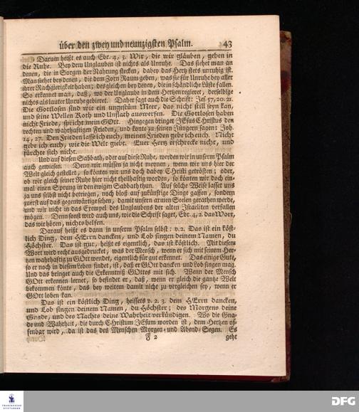 August Hermann Franckens, Weyl.Prof.Theol.Past.Ulr.und Schol. Erklärung Der Psalmen Davids; Erster [und] Anderer Theil, Mit einer Vorrede herausgegeben Von Gotthilf August Francken, S.S.Theol.Doct.und Prof.Publ.Ord.der ersten Dioeces des Saal-Creyses Inspectore und Pred.zur L.Fr. Andere Auflage. HALLE, in Verlegung des Wäysen=Hauses MDCCXLIII--MDCCXLV.