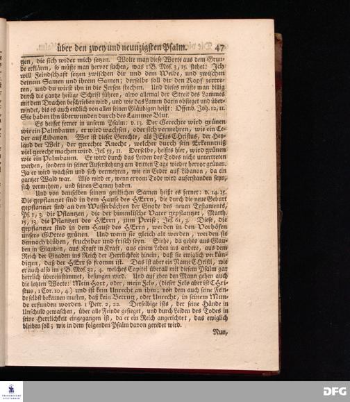 August Hermann Franckens, Weyl.Prof.Theol.Past.Ulr.und Schol. Erklärung Der Psalmen Davids; Erster [und] Anderer Theil, Mit einer Vorrede herausgegeben Von Gotthilf August Francken, S.S.Theol.Doct.und Prof.Publ.Ord.der ersten Dioeces des Saal-Creyses Inspectore und Pred.zur L.Fr. Andere Auflage. HALLE, in Verlegung des Wäysen=Hauses MDCCXLIII--MDCCXLV.