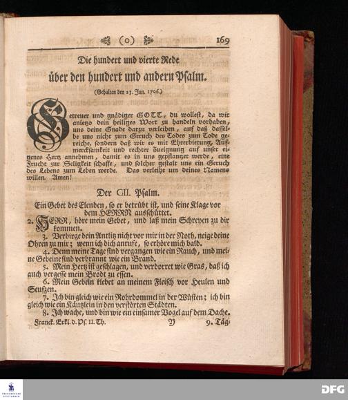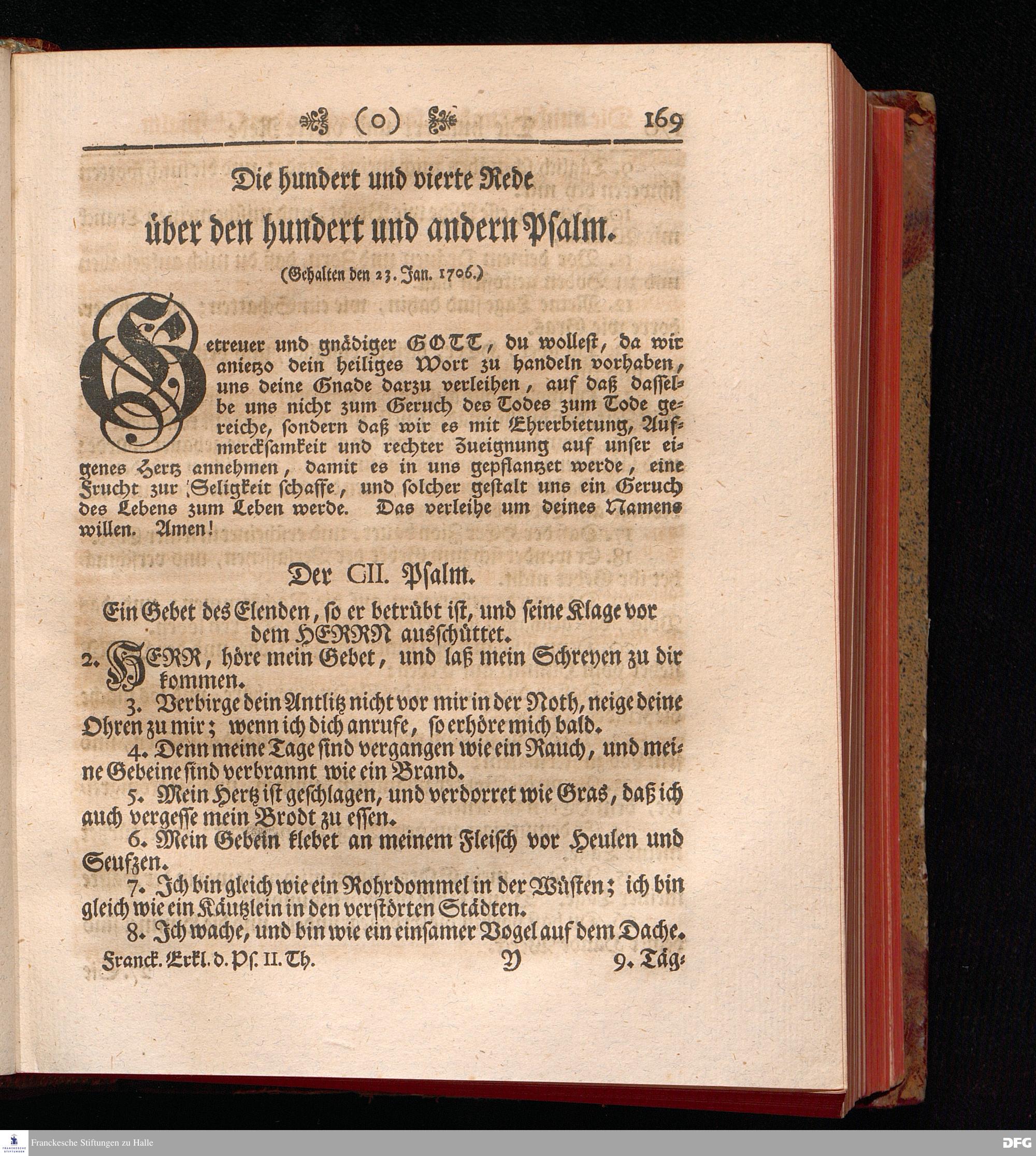 August Hermann Franckens, Weyl.Prof.Theol.Past.Ulr.und Schol. Erklärung Der Psalmen Davids; Erster [und] Anderer Theil, Mit einer Vorrede herausgegeben Von Gotthilf August Francken, S.S.Theol.Doct.und Prof.Publ.Ord.der ersten Dioeces des Saal-Creyses Inspectore und Pred.zur L.Fr. Andere Auflage. HALLE, in Verlegung des Wäysen=Hauses MDCCXLIII--MDCCXLV.