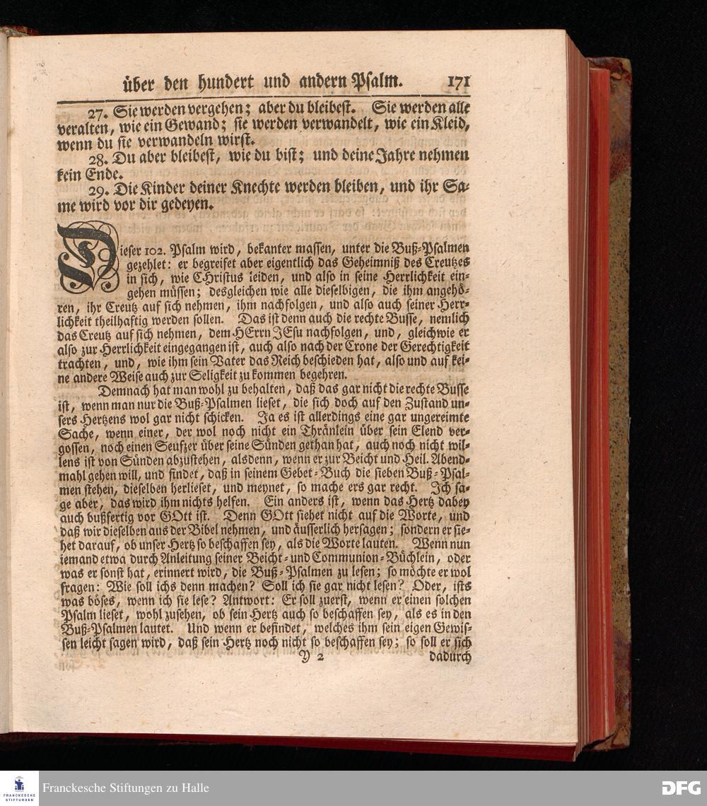 August Hermann Franckens, Weyl.Prof.Theol.Past.Ulr.und Schol. Erklärung Der Psalmen Davids; Erster [und] Anderer Theil, Mit einer Vorrede herausgegeben Von Gotthilf August Francken, S.S.Theol.Doct.und Prof.Publ.Ord.der ersten Dioeces des Saal-Creyses Inspectore und Pred.zur L.Fr. Andere Auflage. HALLE, in Verlegung des Wäysen=Hauses MDCCXLIII--MDCCXLV.