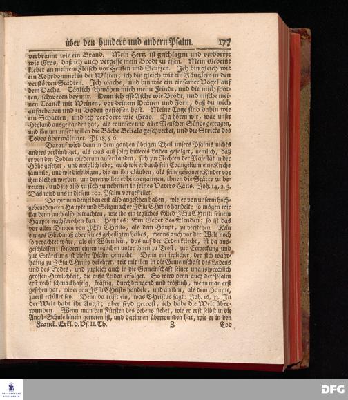 August Hermann Franckens, Weyl.Prof.Theol.Past.Ulr.und Schol. Erklärung Der Psalmen Davids; Erster [und] Anderer Theil, Mit einer Vorrede herausgegeben Von Gotthilf August Francken, S.S.Theol.Doct.und Prof.Publ.Ord.der ersten Dioeces des Saal-Creyses Inspectore und Pred.zur L.Fr. Andere Auflage. HALLE, in Verlegung des Wäysen=Hauses MDCCXLIII--MDCCXLV.