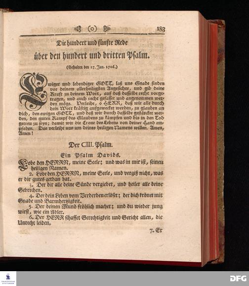 August Hermann Franckens, Weyl.Prof.Theol.Past.Ulr.und Schol. Erklärung Der Psalmen Davids; Erster [und] Anderer Theil, Mit einer Vorrede herausgegeben Von Gotthilf August Francken, S.S.Theol.Doct.und Prof.Publ.Ord.der ersten Dioeces des Saal-Creyses Inspectore und Pred.zur L.Fr. Andere Auflage. HALLE, in Verlegung des Wäysen=Hauses MDCCXLIII--MDCCXLV.