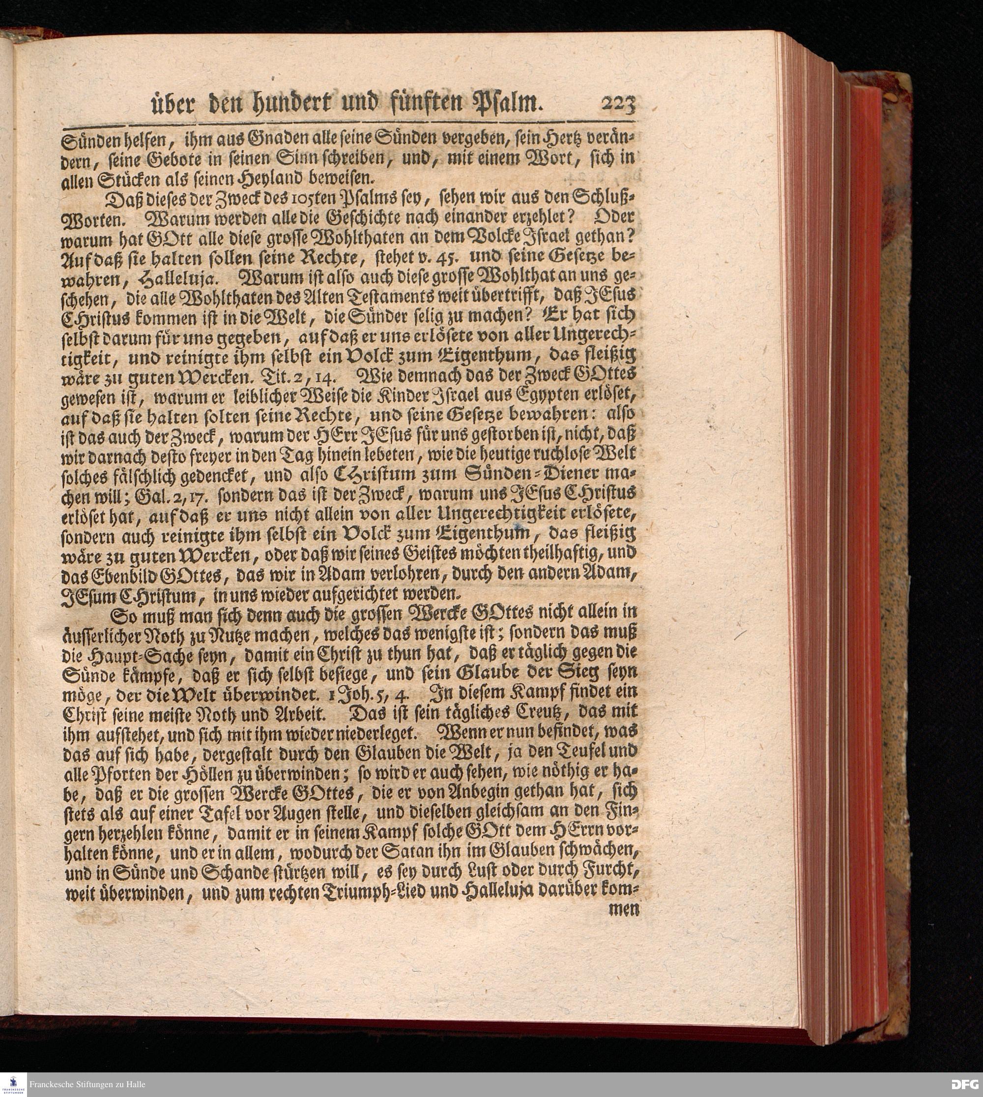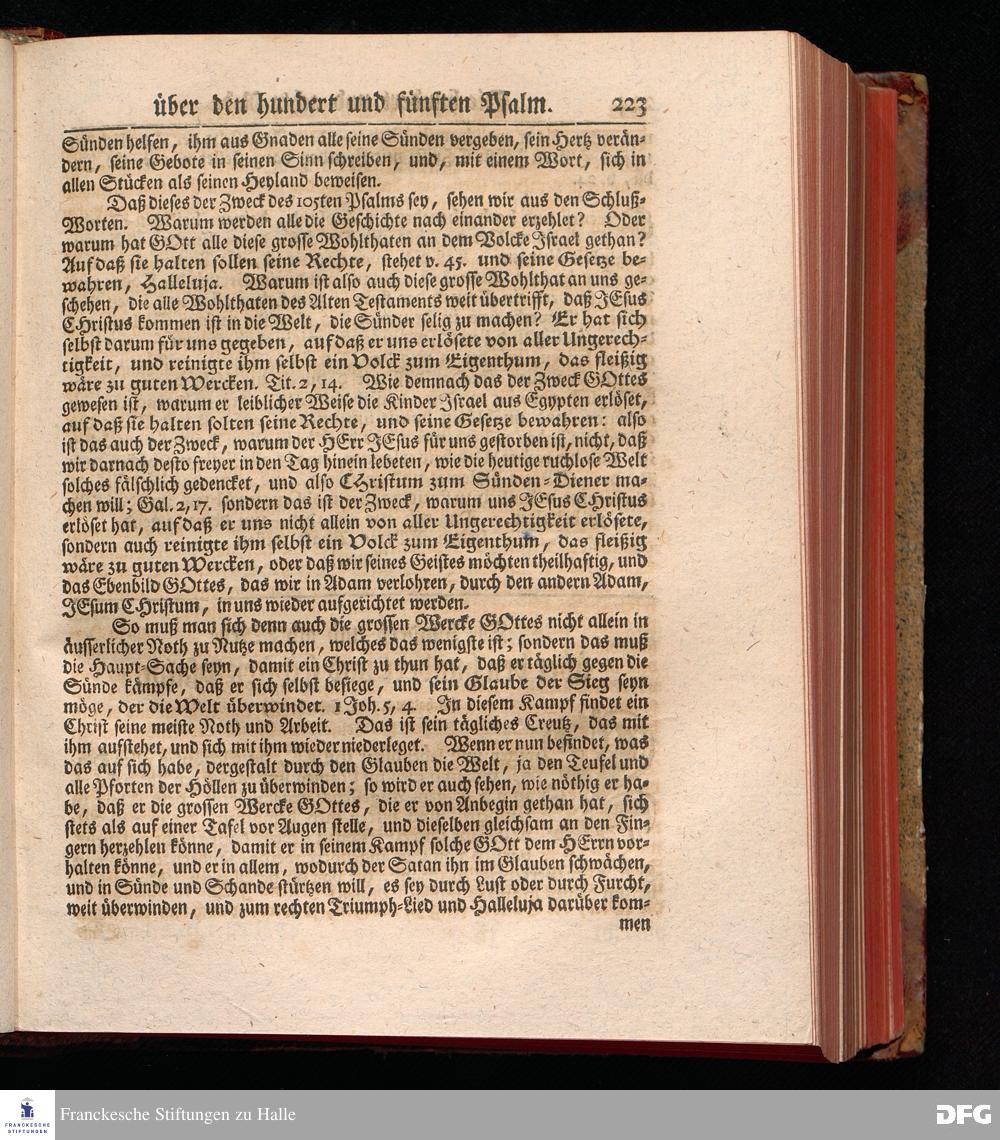 August Hermann Franckens, Weyl.Prof.Theol.Past.Ulr.und Schol. Erklärung Der Psalmen Davids; Erster [und] Anderer Theil, Mit einer Vorrede herausgegeben Von Gotthilf August Francken, S.S.Theol.Doct.und Prof.Publ.Ord.der ersten Dioeces des Saal-Creyses Inspectore und Pred.zur L.Fr. Andere Auflage. HALLE, in Verlegung des Wäysen=Hauses MDCCXLIII--MDCCXLV.