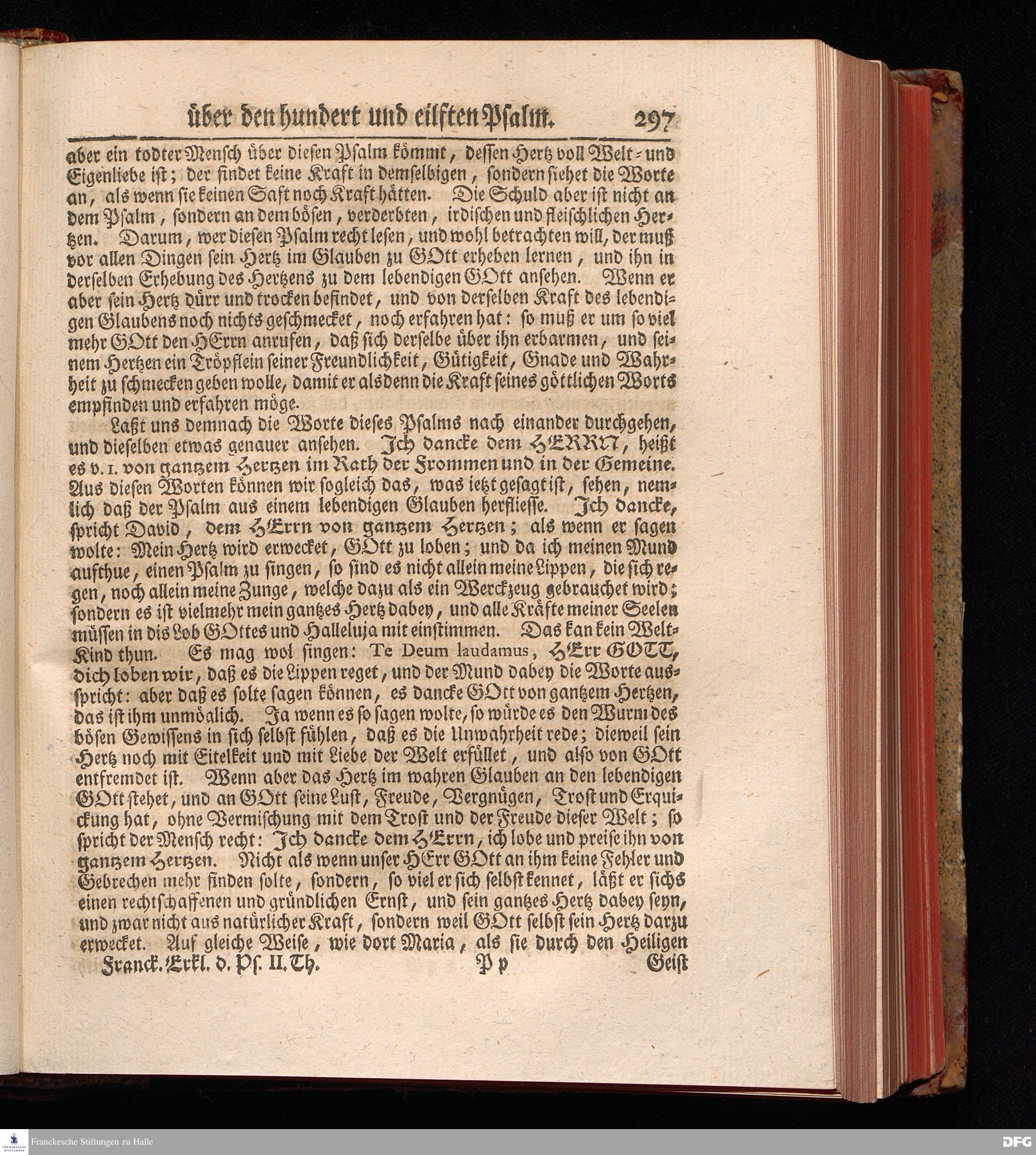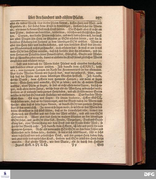 August Hermann Franckens, Weyl.Prof.Theol.Past.Ulr.und Schol. Erklärung Der Psalmen Davids; Erster [und] Anderer Theil, Mit einer Vorrede herausgegeben Von Gotthilf August Francken, S.S.Theol.Doct.und Prof.Publ.Ord.der ersten Dioeces des Saal-Creyses Inspectore und Pred.zur L.Fr. Andere Auflage. HALLE, in Verlegung des Wäysen=Hauses MDCCXLIII--MDCCXLV.