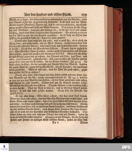 August Hermann Franckens, Weyl.Prof.Theol.Past.Ulr.und Schol. Erklärung Der Psalmen Davids; Erster [und] Anderer Theil, Mit einer Vorrede herausgegeben Von Gotthilf August Francken, S.S.Theol.Doct.und Prof.Publ.Ord.der ersten Dioeces des Saal-Creyses Inspectore und Pred.zur L.Fr. Andere Auflage. HALLE, in Verlegung des Wäysen=Hauses MDCCXLIII--MDCCXLV.