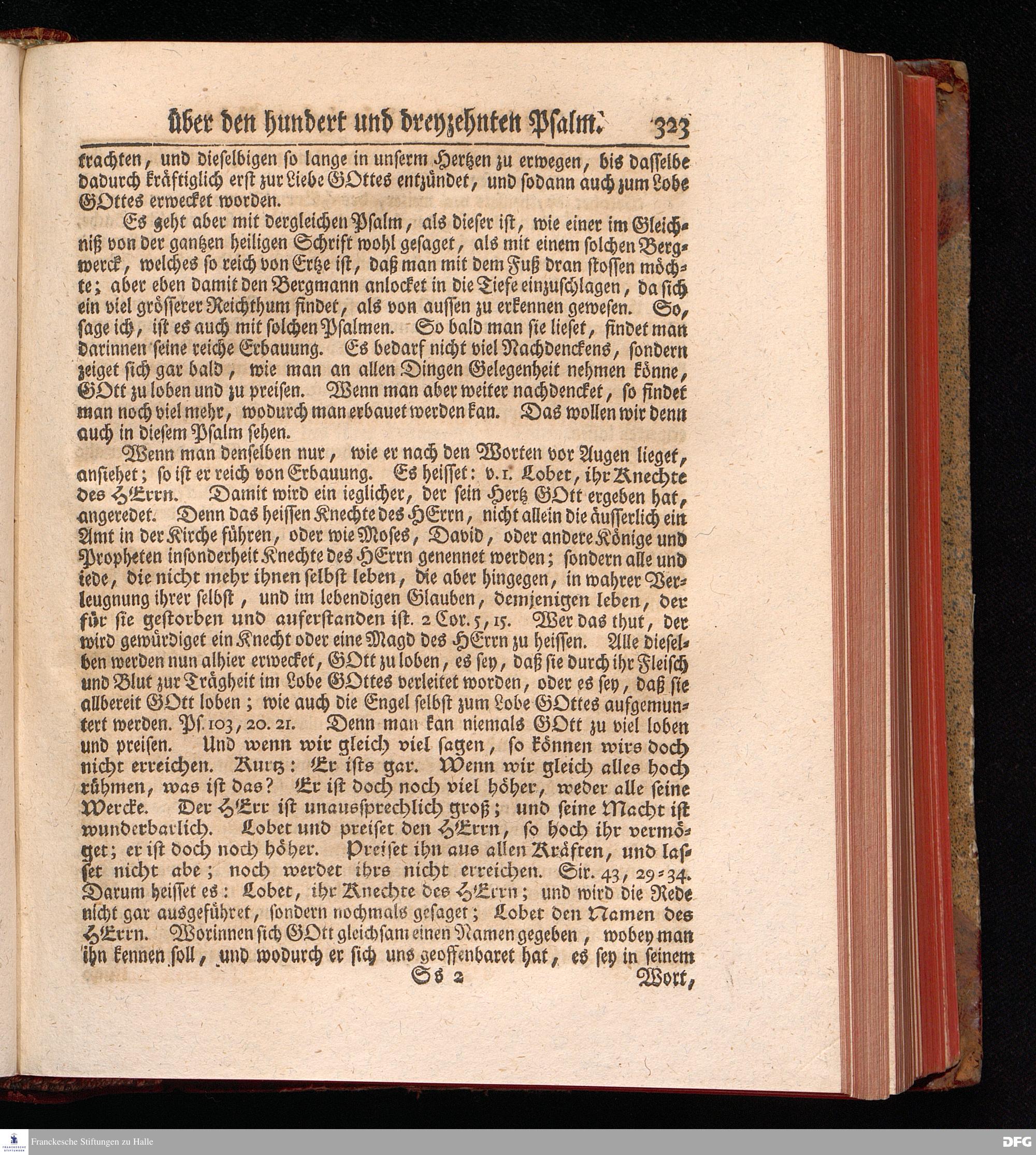August Hermann Franckens, Weyl.Prof.Theol.Past.Ulr.und Schol. Erklärung Der Psalmen Davids; Erster [und] Anderer Theil, Mit einer Vorrede herausgegeben Von Gotthilf August Francken, S.S.Theol.Doct.und Prof.Publ.Ord.der ersten Dioeces des Saal-Creyses Inspectore und Pred.zur L.Fr. Andere Auflage. HALLE, in Verlegung des Wäysen=Hauses MDCCXLIII--MDCCXLV.