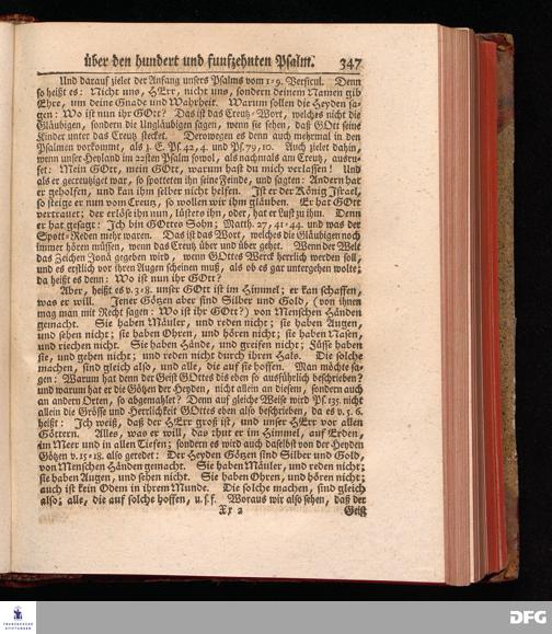 August Hermann Franckens, Weyl.Prof.Theol.Past.Ulr.und Schol. Erklärung Der Psalmen Davids; Erster [und] Anderer Theil, Mit einer Vorrede herausgegeben Von Gotthilf August Francken, S.S.Theol.Doct.und Prof.Publ.Ord.der ersten Dioeces des Saal-Creyses Inspectore und Pred.zur L.Fr. Andere Auflage. HALLE, in Verlegung des Wäysen=Hauses MDCCXLIII--MDCCXLV.