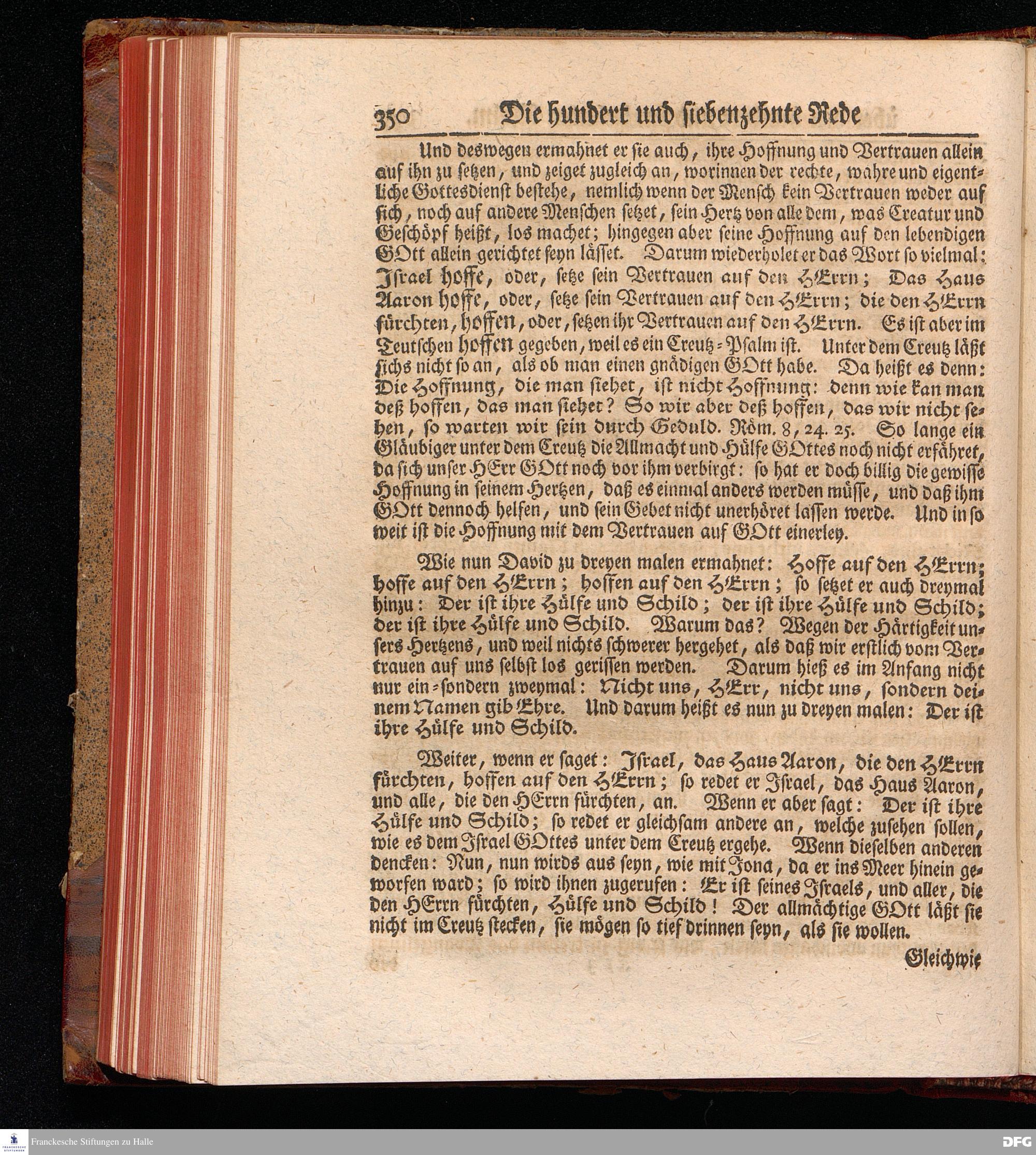 August Hermann Franckens, Weyl.Prof.Theol.Past.Ulr.und Schol. Erklärung Der Psalmen Davids; Erster [und] Anderer Theil, Mit einer Vorrede herausgegeben Von Gotthilf August Francken, S.S.Theol.Doct.und Prof.Publ.Ord.der ersten Dioeces des Saal-Creyses Inspectore und Pred.zur L.Fr. Andere Auflage. HALLE, in Verlegung des Wäysen=Hauses MDCCXLIII--MDCCXLV.