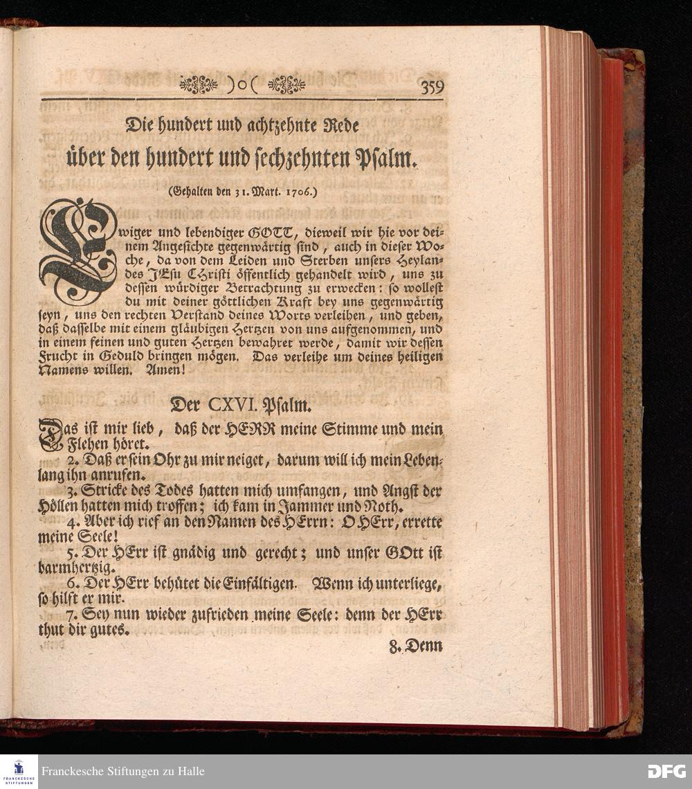 August Hermann Franckens, Weyl.Prof.Theol.Past.Ulr.und Schol. Erklärung Der Psalmen Davids; Erster [und] Anderer Theil, Mit einer Vorrede herausgegeben Von Gotthilf August Francken, S.S.Theol.Doct.und Prof.Publ.Ord.der ersten Dioeces des Saal-Creyses Inspectore und Pred.zur L.Fr. Andere Auflage. HALLE, in Verlegung des Wäysen=Hauses MDCCXLIII--MDCCXLV.