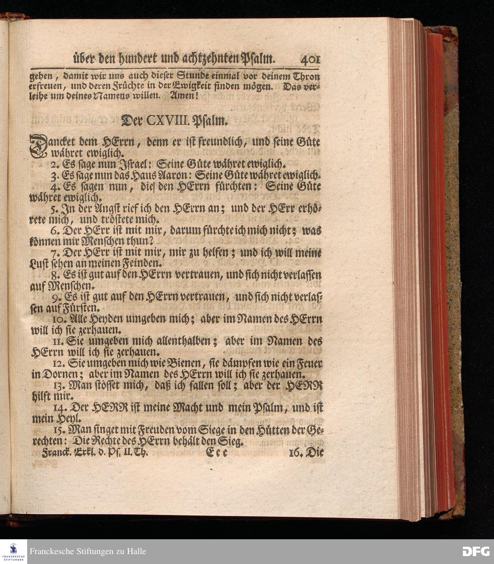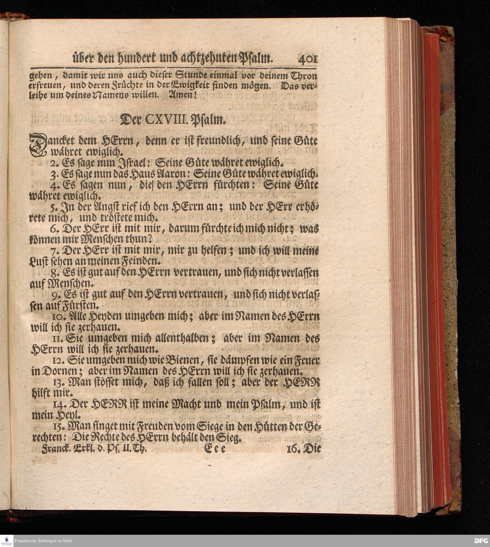 August Hermann Franckens, Weyl.Prof.Theol.Past.Ulr.und Schol. Erklärung Der Psalmen Davids; Erster [und] Anderer Theil, Mit einer Vorrede herausgegeben Von Gotthilf August Francken, S.S.Theol.Doct.und Prof.Publ.Ord.der ersten Dioeces des Saal-Creyses Inspectore und Pred.zur L.Fr. Andere Auflage. HALLE, in Verlegung des Wäysen=Hauses MDCCXLIII--MDCCXLV.