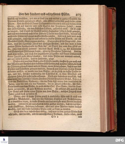 August Hermann Franckens, Weyl.Prof.Theol.Past.Ulr.und Schol. Erklärung Der Psalmen Davids; Erster [und] Anderer Theil, Mit einer Vorrede herausgegeben Von Gotthilf August Francken, S.S.Theol.Doct.und Prof.Publ.Ord.der ersten Dioeces des Saal-Creyses Inspectore und Pred.zur L.Fr. Andere Auflage. HALLE, in Verlegung des Wäysen=Hauses MDCCXLIII--MDCCXLV.