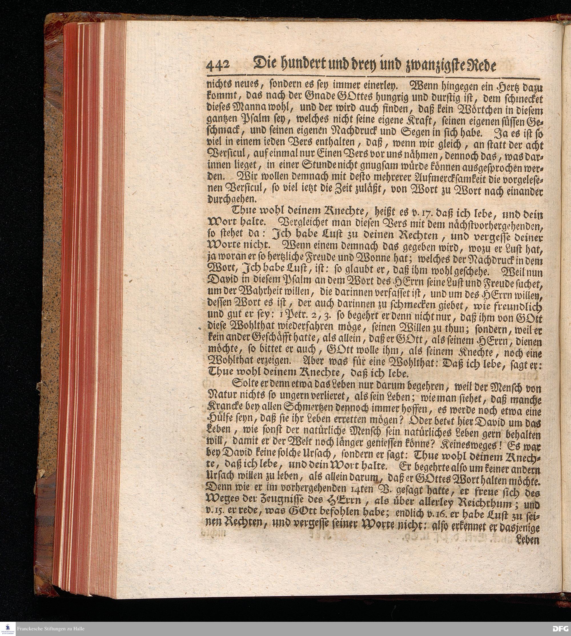 August Hermann Franckens, Weyl.Prof.Theol.Past.Ulr.und Schol. Erklärung Der Psalmen Davids; Erster [und] Anderer Theil, Mit einer Vorrede herausgegeben Von Gotthilf August Francken, S.S.Theol.Doct.und Prof.Publ.Ord.der ersten Dioeces des Saal-Creyses Inspectore und Pred.zur L.Fr. Andere Auflage. HALLE, in Verlegung des Wäysen=Hauses MDCCXLIII--MDCCXLV.