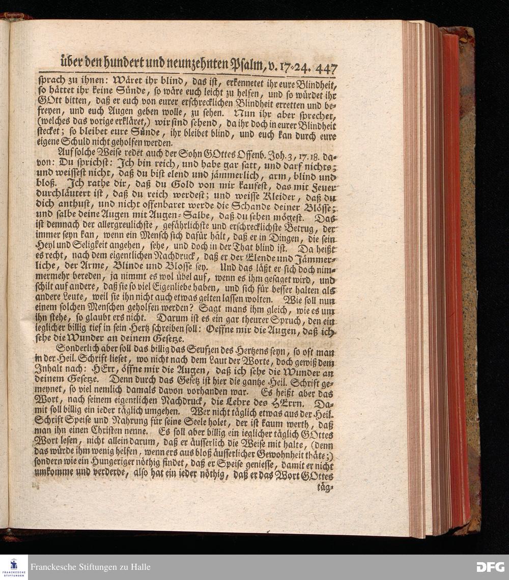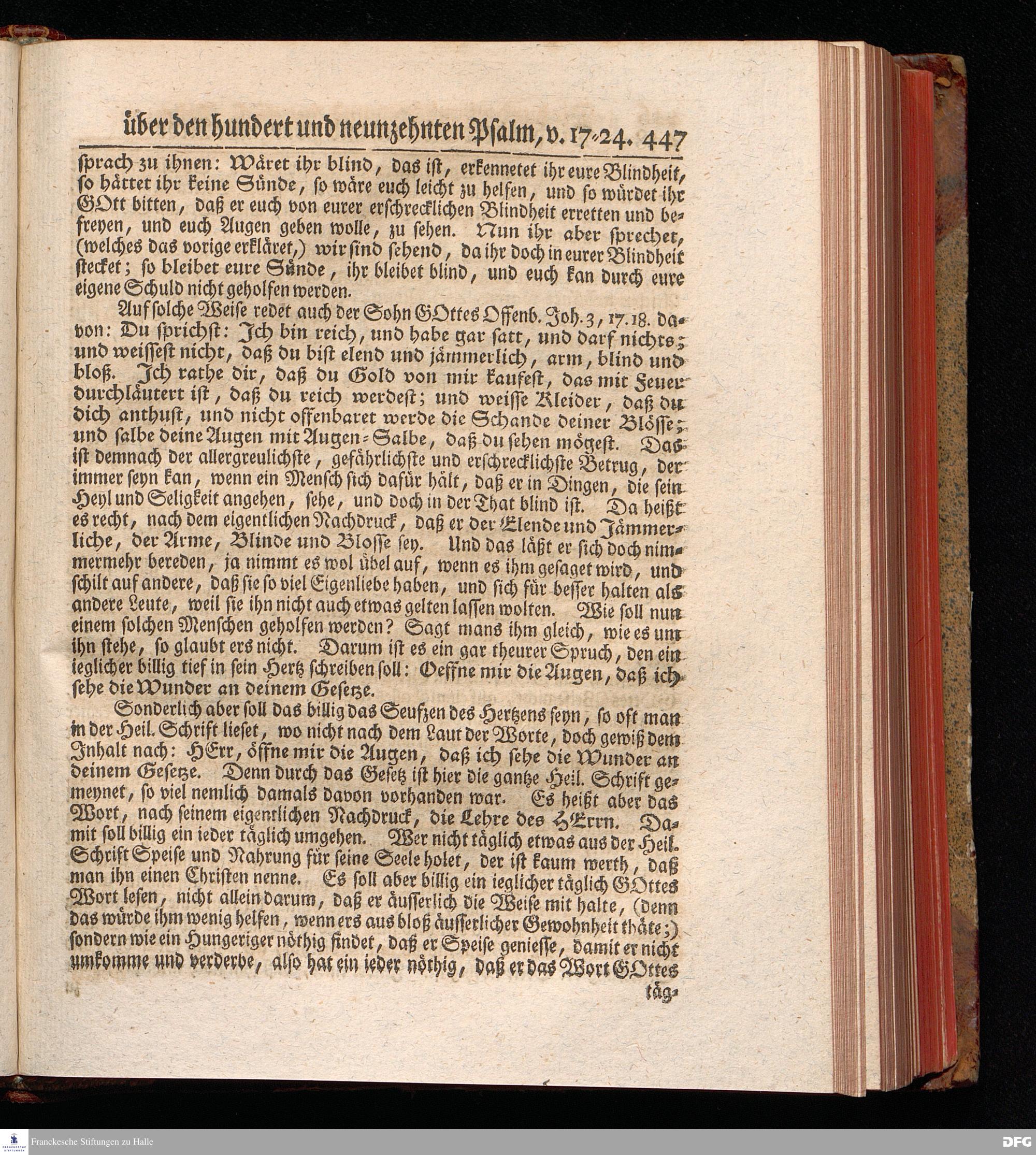August Hermann Franckens, Weyl.Prof.Theol.Past.Ulr.und Schol. Erklärung Der Psalmen Davids; Erster [und] Anderer Theil, Mit einer Vorrede herausgegeben Von Gotthilf August Francken, S.S.Theol.Doct.und Prof.Publ.Ord.der ersten Dioeces des Saal-Creyses Inspectore und Pred.zur L.Fr. Andere Auflage. HALLE, in Verlegung des Wäysen=Hauses MDCCXLIII--MDCCXLV.