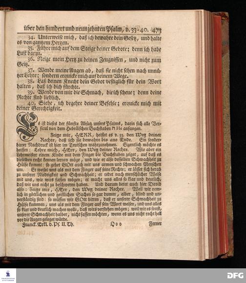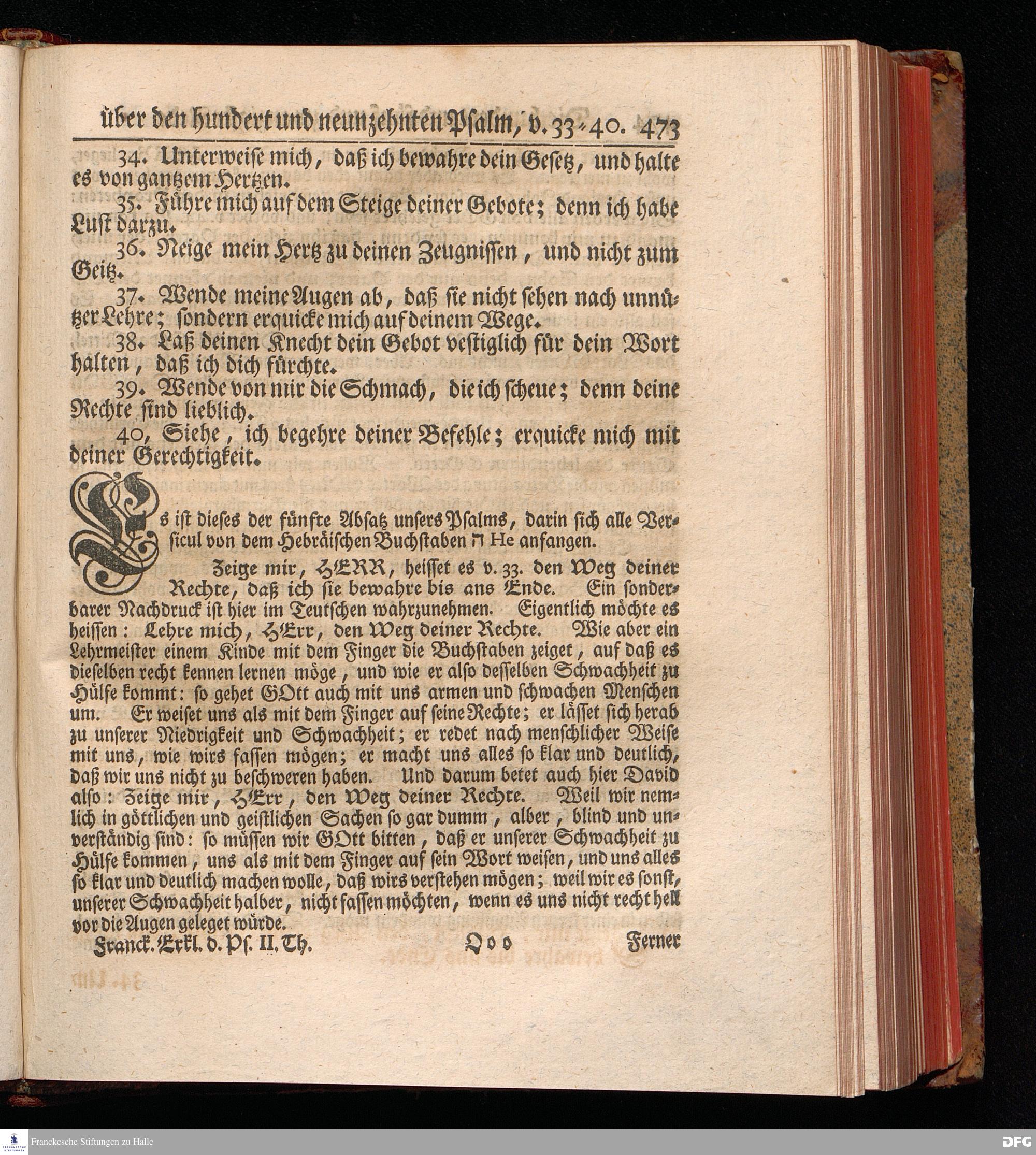 August Hermann Franckens, Weyl.Prof.Theol.Past.Ulr.und Schol. Erklärung Der Psalmen Davids; Erster [und] Anderer Theil, Mit einer Vorrede herausgegeben Von Gotthilf August Francken, S.S.Theol.Doct.und Prof.Publ.Ord.der ersten Dioeces des Saal-Creyses Inspectore und Pred.zur L.Fr. Andere Auflage. HALLE, in Verlegung des Wäysen=Hauses MDCCXLIII--MDCCXLV.