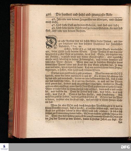 August Hermann Franckens, Weyl.Prof.Theol.Past.Ulr.und Schol. Erklärung Der Psalmen Davids; Erster [und] Anderer Theil, Mit einer Vorrede herausgegeben Von Gotthilf August Francken, S.S.Theol.Doct.und Prof.Publ.Ord.der ersten Dioeces des Saal-Creyses Inspectore und Pred.zur L.Fr. Andere Auflage. HALLE, in Verlegung des Wäysen=Hauses MDCCXLIII--MDCCXLV.
