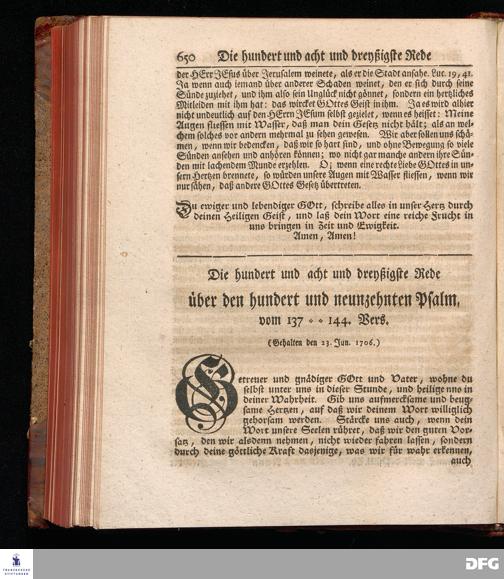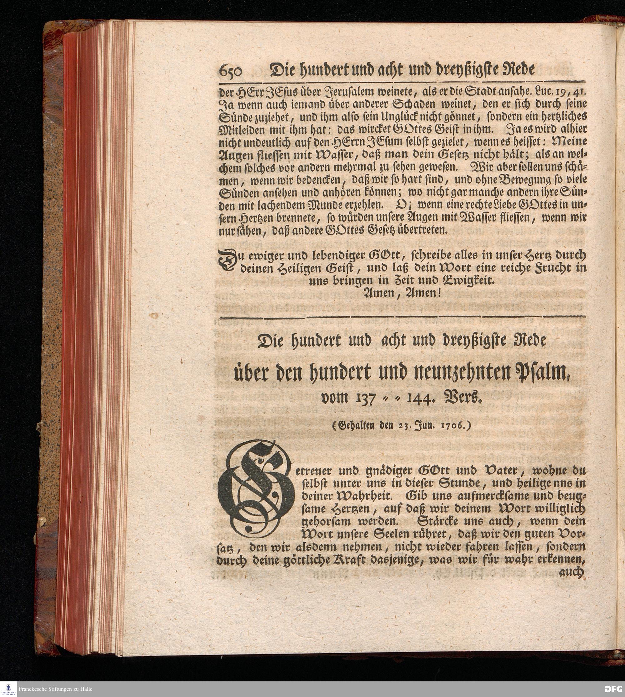 August Hermann Franckens, Weyl.Prof.Theol.Past.Ulr.und Schol. Erklärung Der Psalmen Davids; Erster [und] Anderer Theil, Mit einer Vorrede herausgegeben Von Gotthilf August Francken, S.S.Theol.Doct.und Prof.Publ.Ord.der ersten Dioeces des Saal-Creyses Inspectore und Pred.zur L.Fr. Andere Auflage. HALLE, in Verlegung des Wäysen=Hauses MDCCXLIII--MDCCXLV.