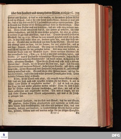 August Hermann Franckens, Weyl.Prof.Theol.Past.Ulr.und Schol. Erklärung Der Psalmen Davids; Erster [und] Anderer Theil, Mit einer Vorrede herausgegeben Von Gotthilf August Francken, S.S.Theol.Doct.und Prof.Publ.Ord.der ersten Dioeces des Saal-Creyses Inspectore und Pred.zur L.Fr. Andere Auflage. HALLE, in Verlegung des Wäysen=Hauses MDCCXLIII--MDCCXLV.