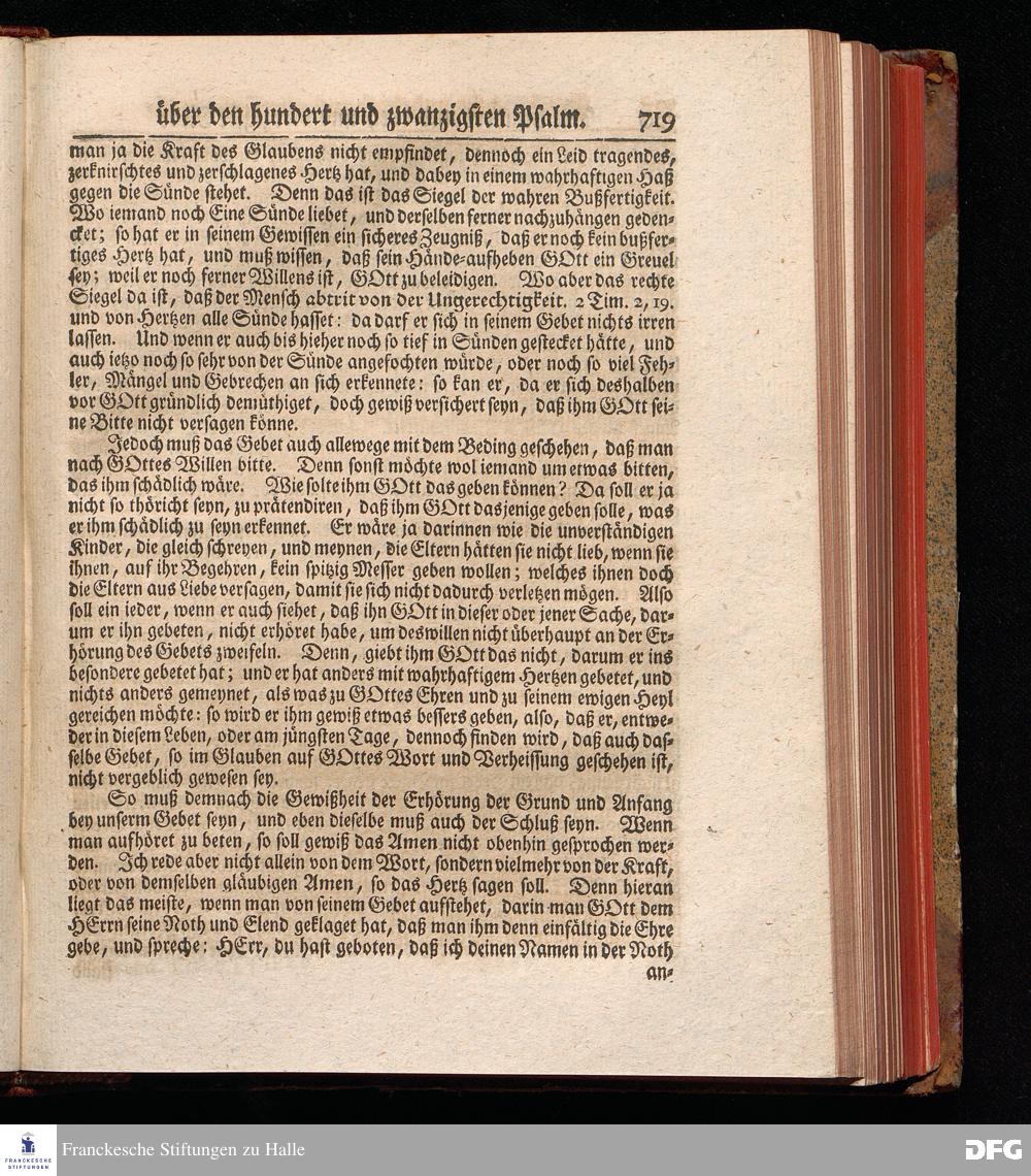 August Hermann Franckens, Weyl.Prof.Theol.Past.Ulr.und Schol. Erklärung Der Psalmen Davids; Erster [und] Anderer Theil, Mit einer Vorrede herausgegeben Von Gotthilf August Francken, S.S.Theol.Doct.und Prof.Publ.Ord.der ersten Dioeces des Saal-Creyses Inspectore und Pred.zur L.Fr. Andere Auflage. HALLE, in Verlegung des Wäysen=Hauses MDCCXLIII--MDCCXLV.
