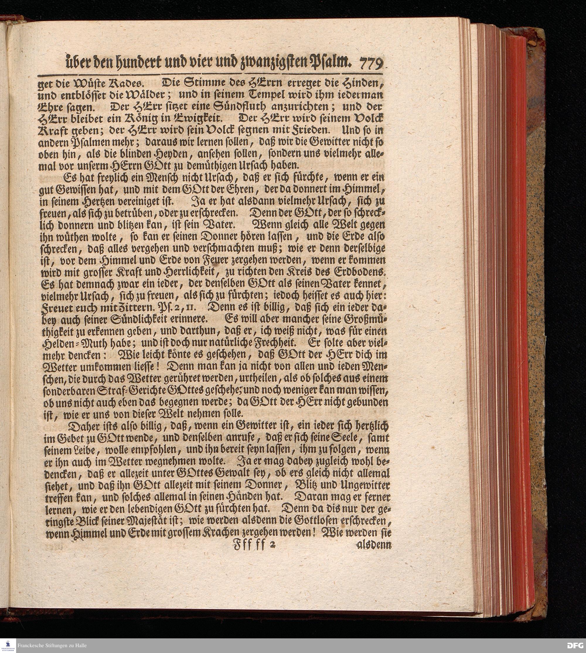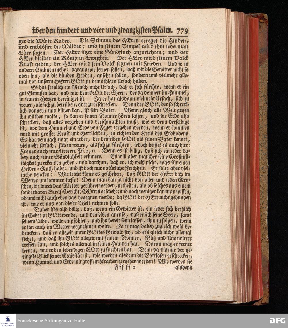 August Hermann Franckens, Weyl.Prof.Theol.Past.Ulr.und Schol. Erklärung Der Psalmen Davids; Erster [und] Anderer Theil, Mit einer Vorrede herausgegeben Von Gotthilf August Francken, S.S.Theol.Doct.und Prof.Publ.Ord.der ersten Dioeces des Saal-Creyses Inspectore und Pred.zur L.Fr. Andere Auflage. HALLE, in Verlegung des Wäysen=Hauses MDCCXLIII--MDCCXLV.