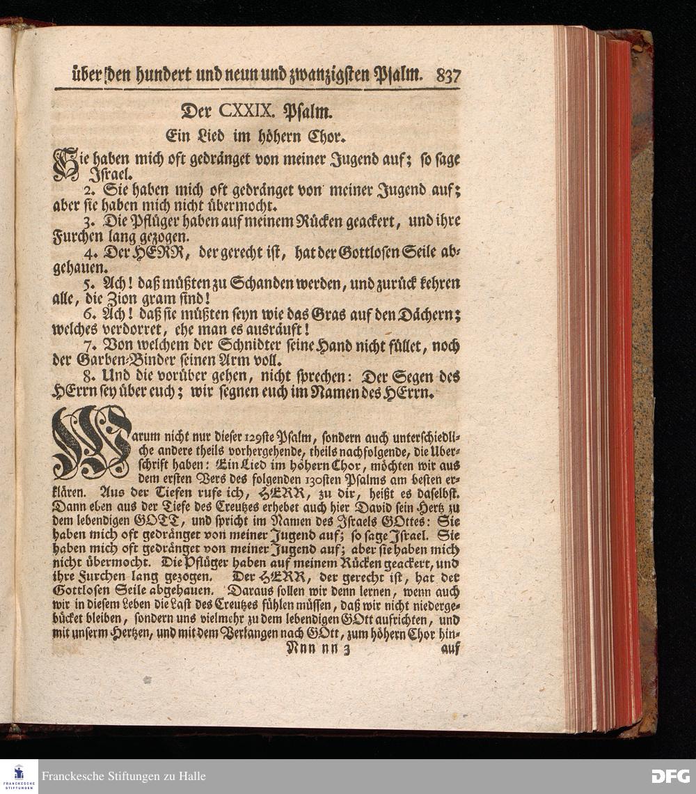 August Hermann Franckens, Weyl.Prof.Theol.Past.Ulr.und Schol. Erklärung Der Psalmen Davids; Erster [und] Anderer Theil, Mit einer Vorrede herausgegeben Von Gotthilf August Francken, S.S.Theol.Doct.und Prof.Publ.Ord.der ersten Dioeces des Saal-Creyses Inspectore und Pred.zur L.Fr. Andere Auflage. HALLE, in Verlegung des Wäysen=Hauses MDCCXLIII--MDCCXLV.