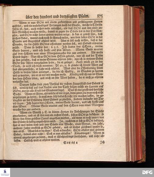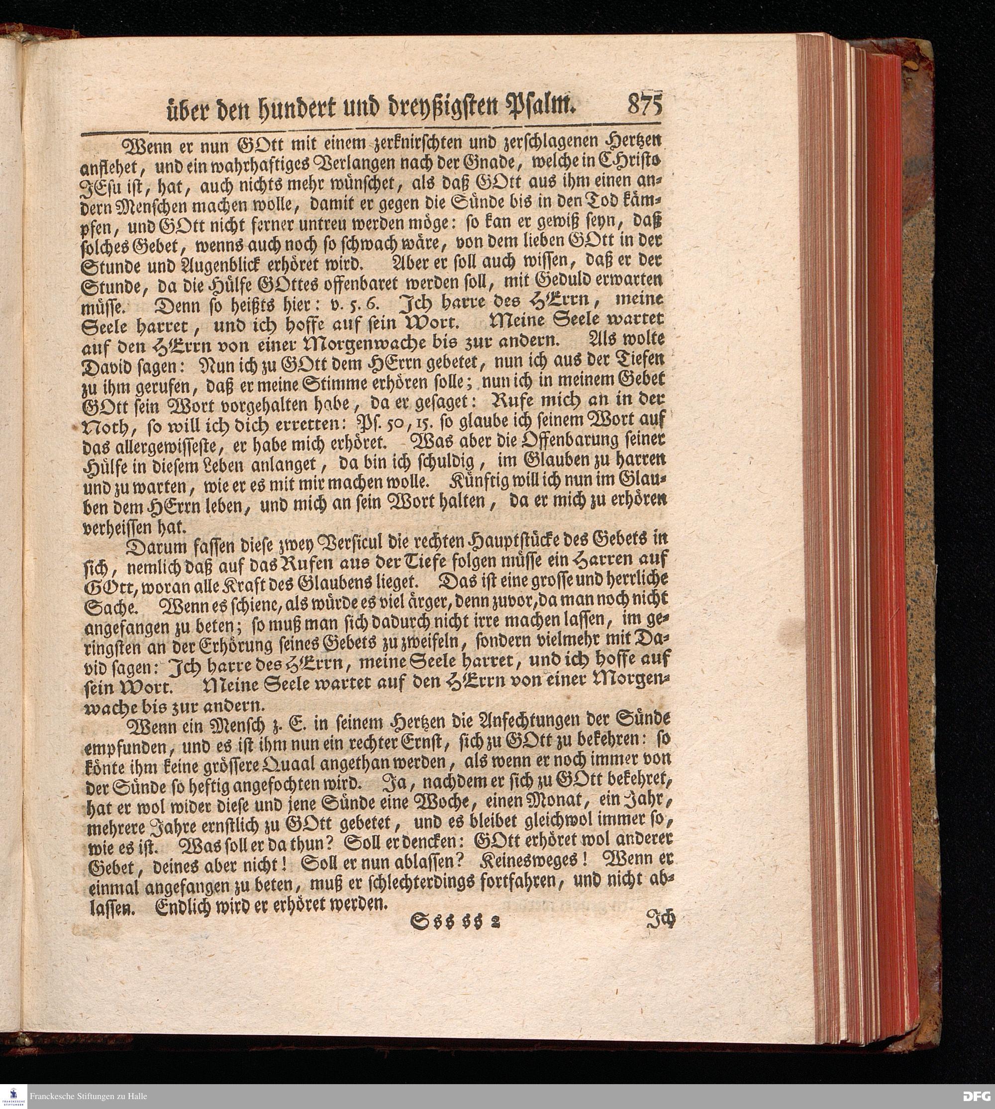 August Hermann Franckens, Weyl.Prof.Theol.Past.Ulr.und Schol. Erklärung Der Psalmen Davids; Erster [und] Anderer Theil, Mit einer Vorrede herausgegeben Von Gotthilf August Francken, S.S.Theol.Doct.und Prof.Publ.Ord.der ersten Dioeces des Saal-Creyses Inspectore und Pred.zur L.Fr. Andere Auflage. HALLE, in Verlegung des Wäysen=Hauses MDCCXLIII--MDCCXLV.