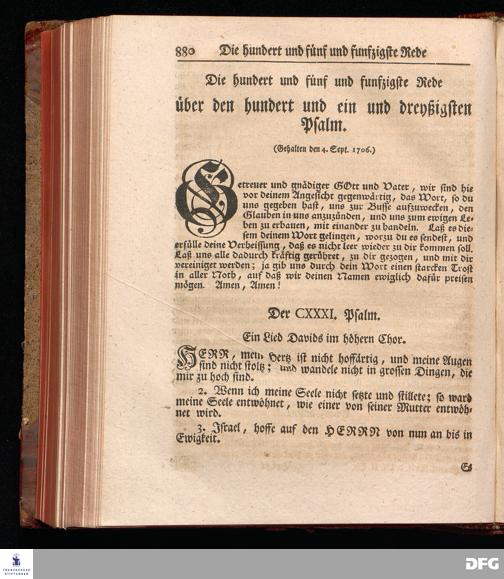 August Hermann Franckens, Weyl.Prof.Theol.Past.Ulr.und Schol. Erklärung Der Psalmen Davids; Erster [und] Anderer Theil, Mit einer Vorrede herausgegeben Von Gotthilf August Francken, S.S.Theol.Doct.und Prof.Publ.Ord.der ersten Dioeces des Saal-Creyses Inspectore und Pred.zur L.Fr. Andere Auflage. HALLE, in Verlegung des Wäysen=Hauses MDCCXLIII--MDCCXLV.