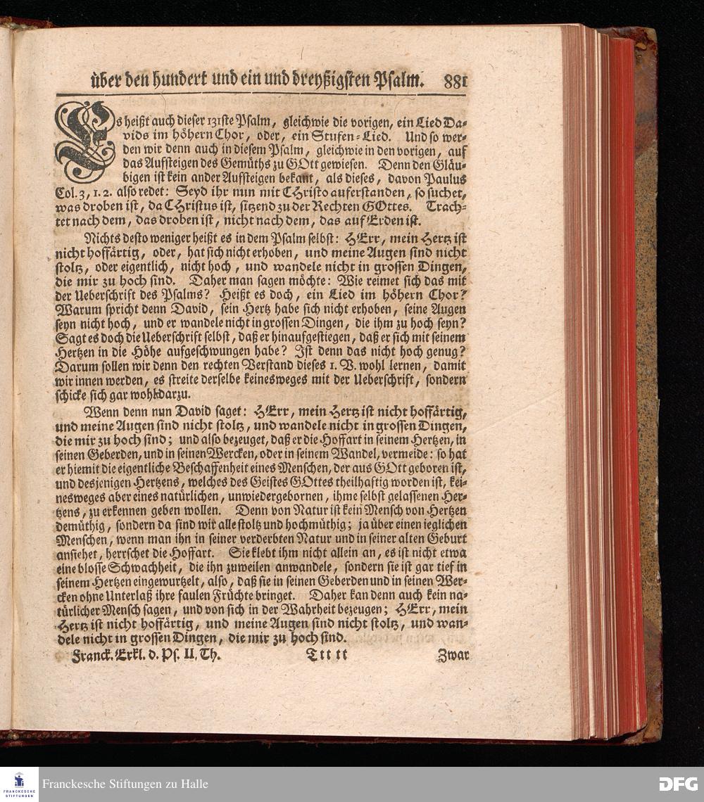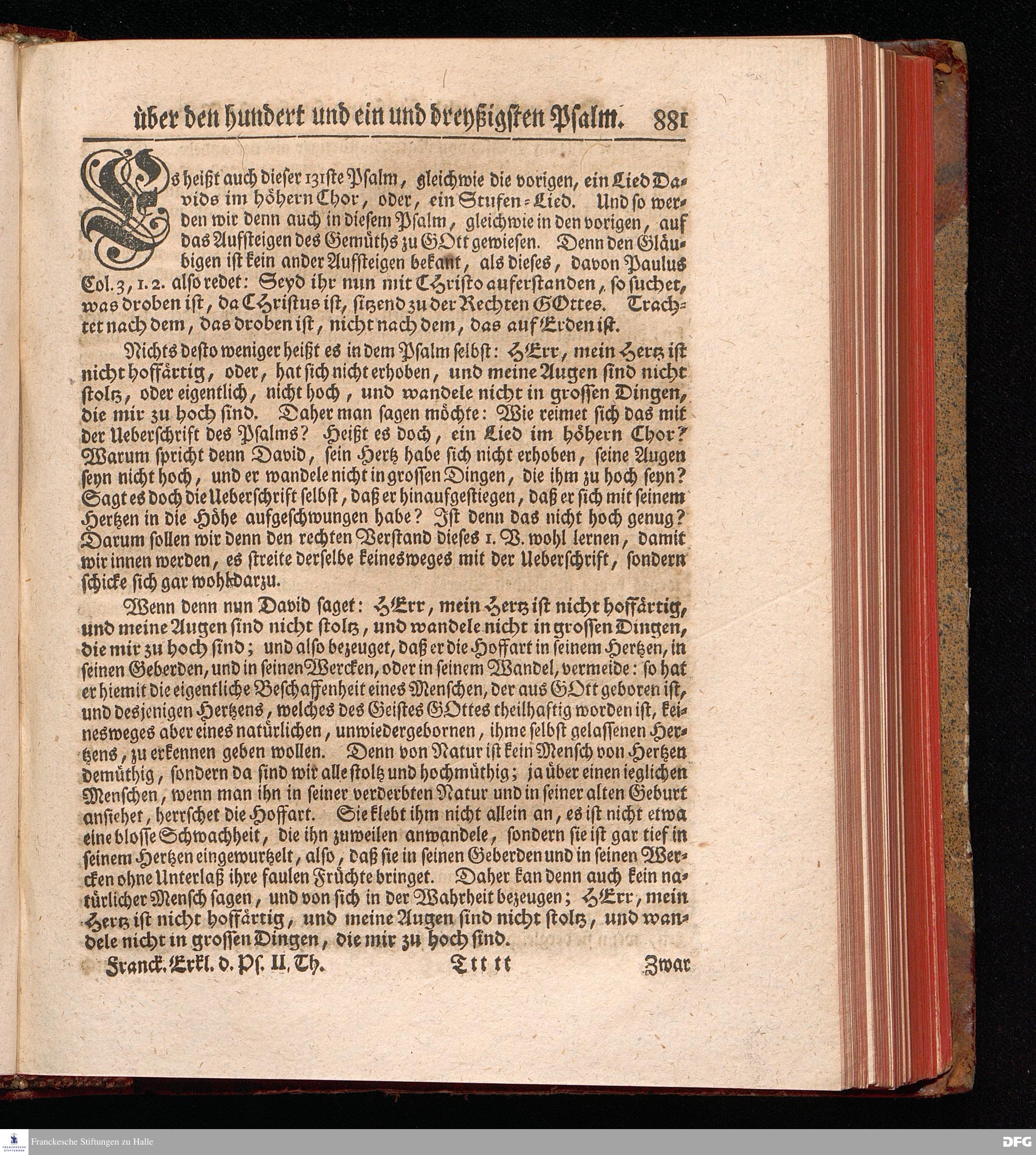 August Hermann Franckens, Weyl.Prof.Theol.Past.Ulr.und Schol. Erklärung Der Psalmen Davids; Erster [und] Anderer Theil, Mit einer Vorrede herausgegeben Von Gotthilf August Francken, S.S.Theol.Doct.und Prof.Publ.Ord.der ersten Dioeces des Saal-Creyses Inspectore und Pred.zur L.Fr. Andere Auflage. HALLE, in Verlegung des Wäysen=Hauses MDCCXLIII--MDCCXLV.