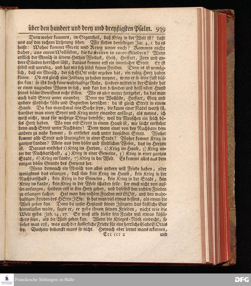 August Hermann Franckens, Weyl.Prof.Theol.Past.Ulr.und Schol. Erklärung Der Psalmen Davids; Erster [und] Anderer Theil, Mit einer Vorrede herausgegeben Von Gotthilf August Francken, S.S.Theol.Doct.und Prof.Publ.Ord.der ersten Dioeces des Saal-Creyses Inspectore und Pred.zur L.Fr. Andere Auflage. HALLE, in Verlegung des Wäysen=Hauses MDCCXLIII--MDCCXLV.
