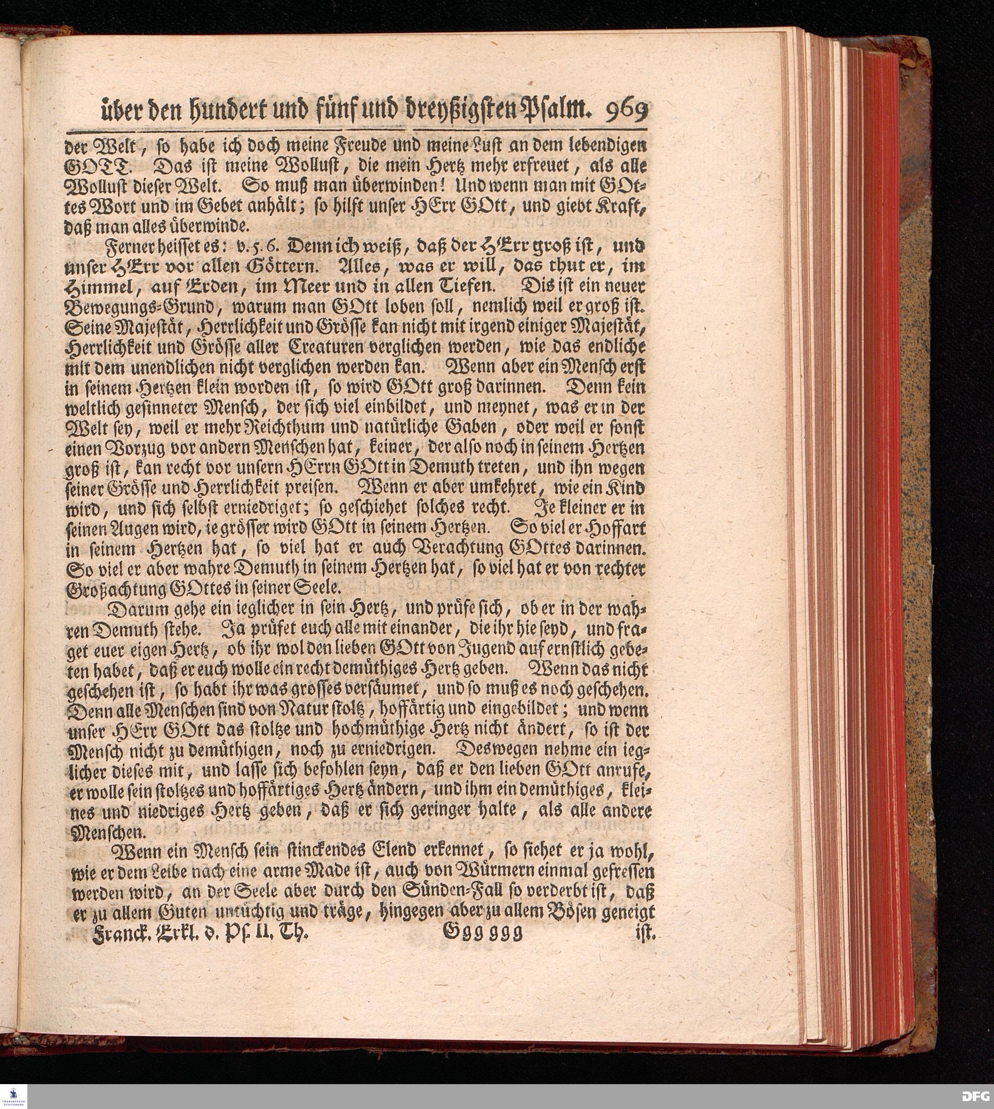 August Hermann Franckens, Weyl.Prof.Theol.Past.Ulr.und Schol. Erklärung Der Psalmen Davids; Erster [und] Anderer Theil, Mit einer Vorrede herausgegeben Von Gotthilf August Francken, S.S.Theol.Doct.und Prof.Publ.Ord.der ersten Dioeces des Saal-Creyses Inspectore und Pred.zur L.Fr. Andere Auflage. HALLE, in Verlegung des Wäysen=Hauses MDCCXLIII--MDCCXLV.