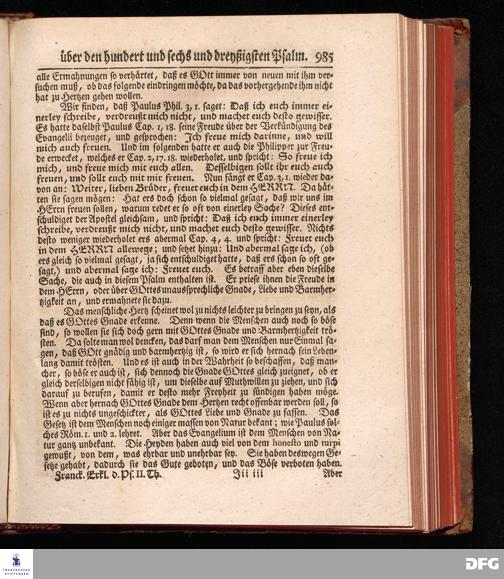 August Hermann Franckens, Weyl.Prof.Theol.Past.Ulr.und Schol. Erklärung Der Psalmen Davids; Erster [und] Anderer Theil, Mit einer Vorrede herausgegeben Von Gotthilf August Francken, S.S.Theol.Doct.und Prof.Publ.Ord.der ersten Dioeces des Saal-Creyses Inspectore und Pred.zur L.Fr. Andere Auflage. HALLE, in Verlegung des Wäysen=Hauses MDCCXLIII--MDCCXLV.