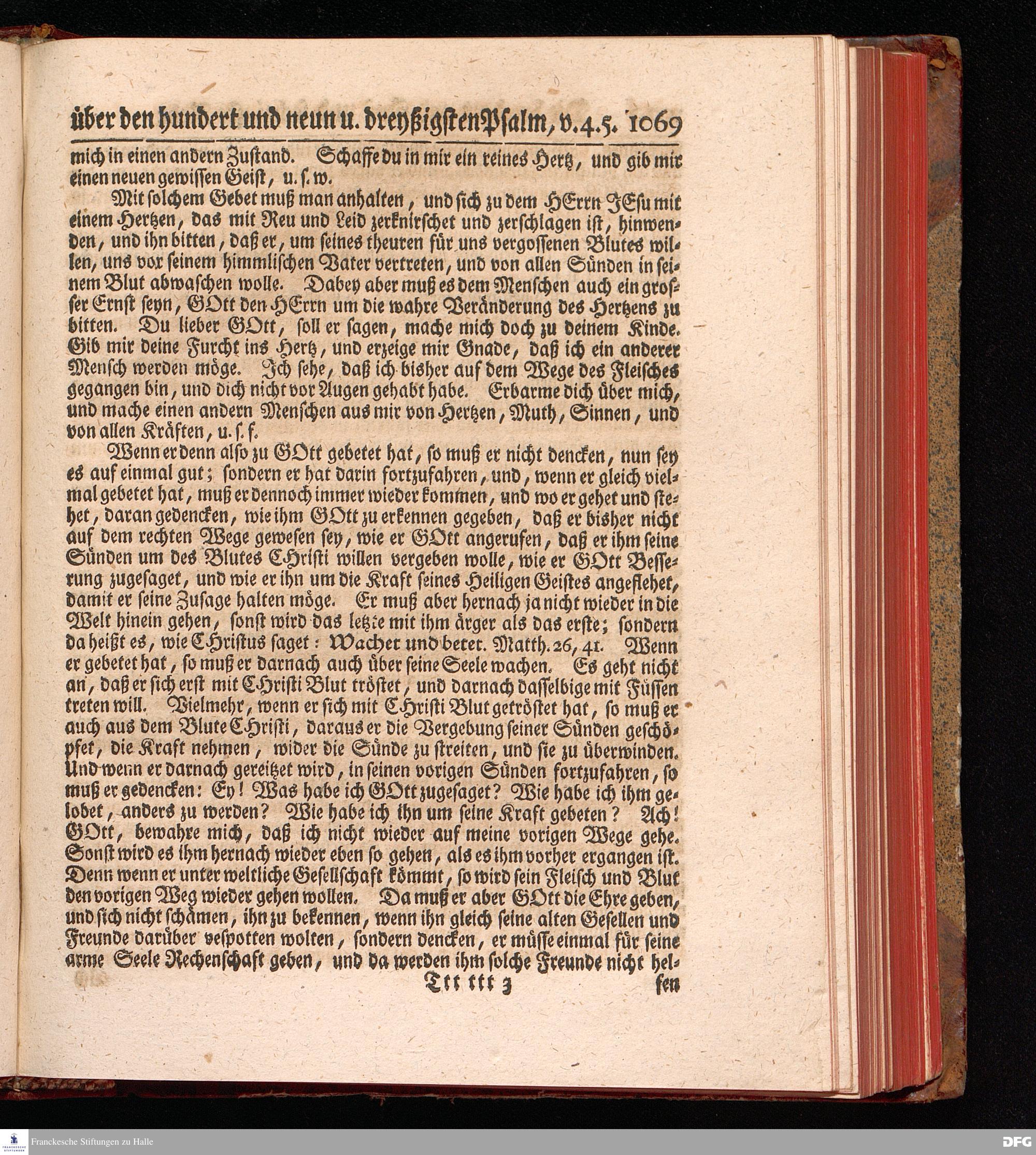 August Hermann Franckens, Weyl.Prof.Theol.Past.Ulr.und Schol. Erklärung Der Psalmen Davids; Erster [und] Anderer Theil, Mit einer Vorrede herausgegeben Von Gotthilf August Francken, S.S.Theol.Doct.und Prof.Publ.Ord.der ersten Dioeces des Saal-Creyses Inspectore und Pred.zur L.Fr. Andere Auflage. HALLE, in Verlegung des Wäysen=Hauses MDCCXLIII--MDCCXLV.