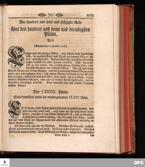 August Hermann Franckens, Weyl.Prof.Theol.Past.Ulr.und Schol. Erklärung Der Psalmen Davids; Erster [und] Anderer Theil, Mit einer Vorrede herausgegeben Von Gotthilf August Francken, S.S.Theol.Doct.und Prof.Publ.Ord.der ersten Dioeces des Saal-Creyses Inspectore und Pred.zur L.Fr. Andere Auflage. HALLE, in Verlegung des Wäysen=Hauses MDCCXLIII--MDCCXLV.