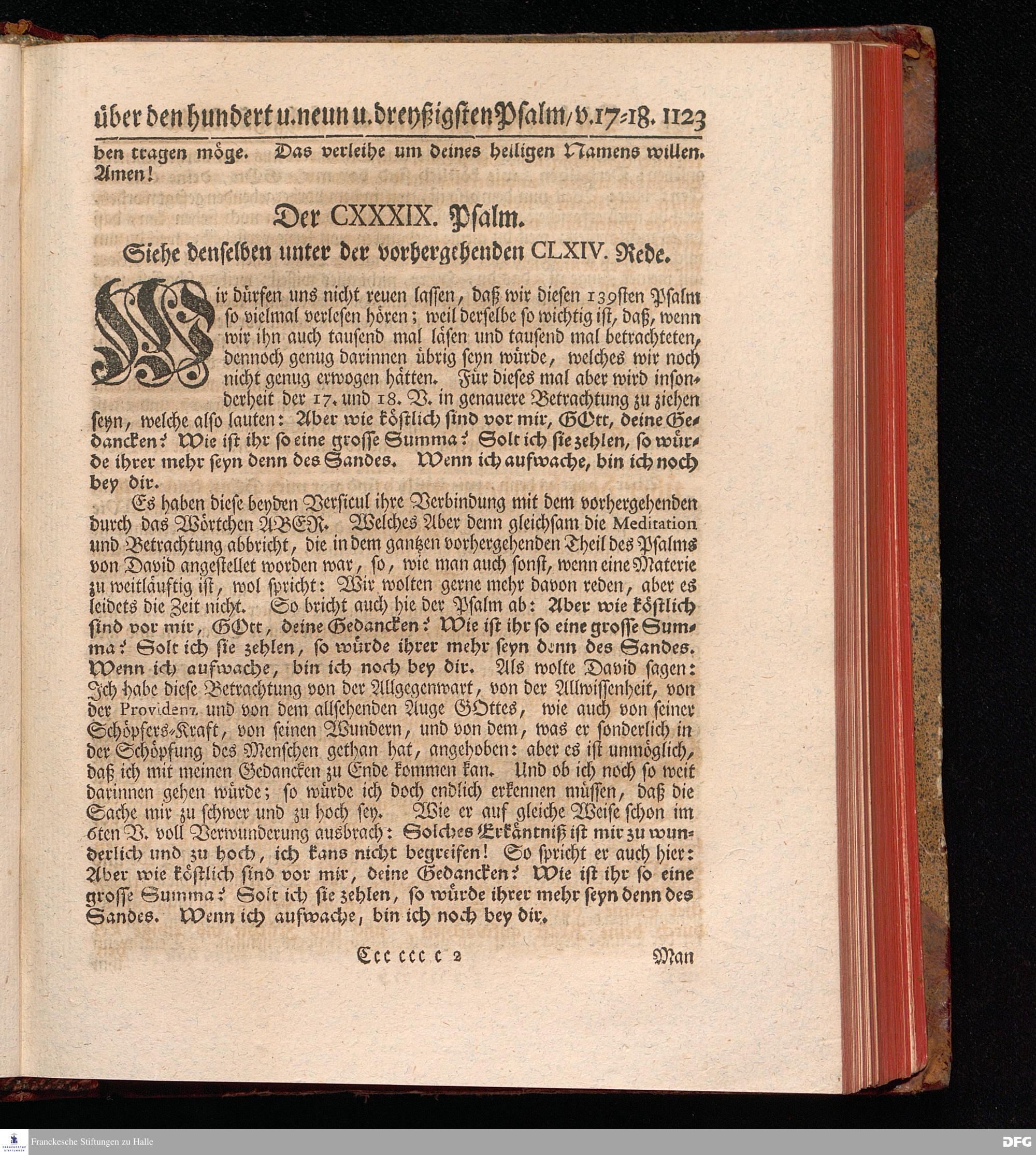 August Hermann Franckens, Weyl.Prof.Theol.Past.Ulr.und Schol. Erklärung Der Psalmen Davids; Erster [und] Anderer Theil, Mit einer Vorrede herausgegeben Von Gotthilf August Francken, S.S.Theol.Doct.und Prof.Publ.Ord.der ersten Dioeces des Saal-Creyses Inspectore und Pred.zur L.Fr. Andere Auflage. HALLE, in Verlegung des Wäysen=Hauses MDCCXLIII--MDCCXLV.