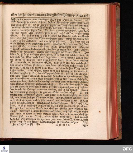 August Hermann Franckens, Weyl.Prof.Theol.Past.Ulr.und Schol. Erklärung Der Psalmen Davids; Erster [und] Anderer Theil, Mit einer Vorrede herausgegeben Von Gotthilf August Francken, S.S.Theol.Doct.und Prof.Publ.Ord.der ersten Dioeces des Saal-Creyses Inspectore und Pred.zur L.Fr. Andere Auflage. HALLE, in Verlegung des Wäysen=Hauses MDCCXLIII--MDCCXLV.
