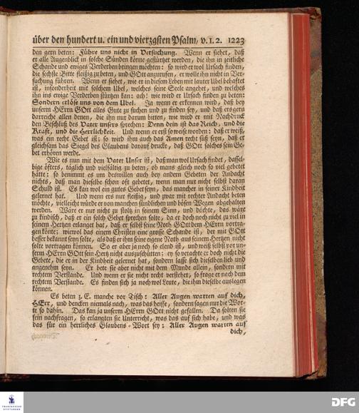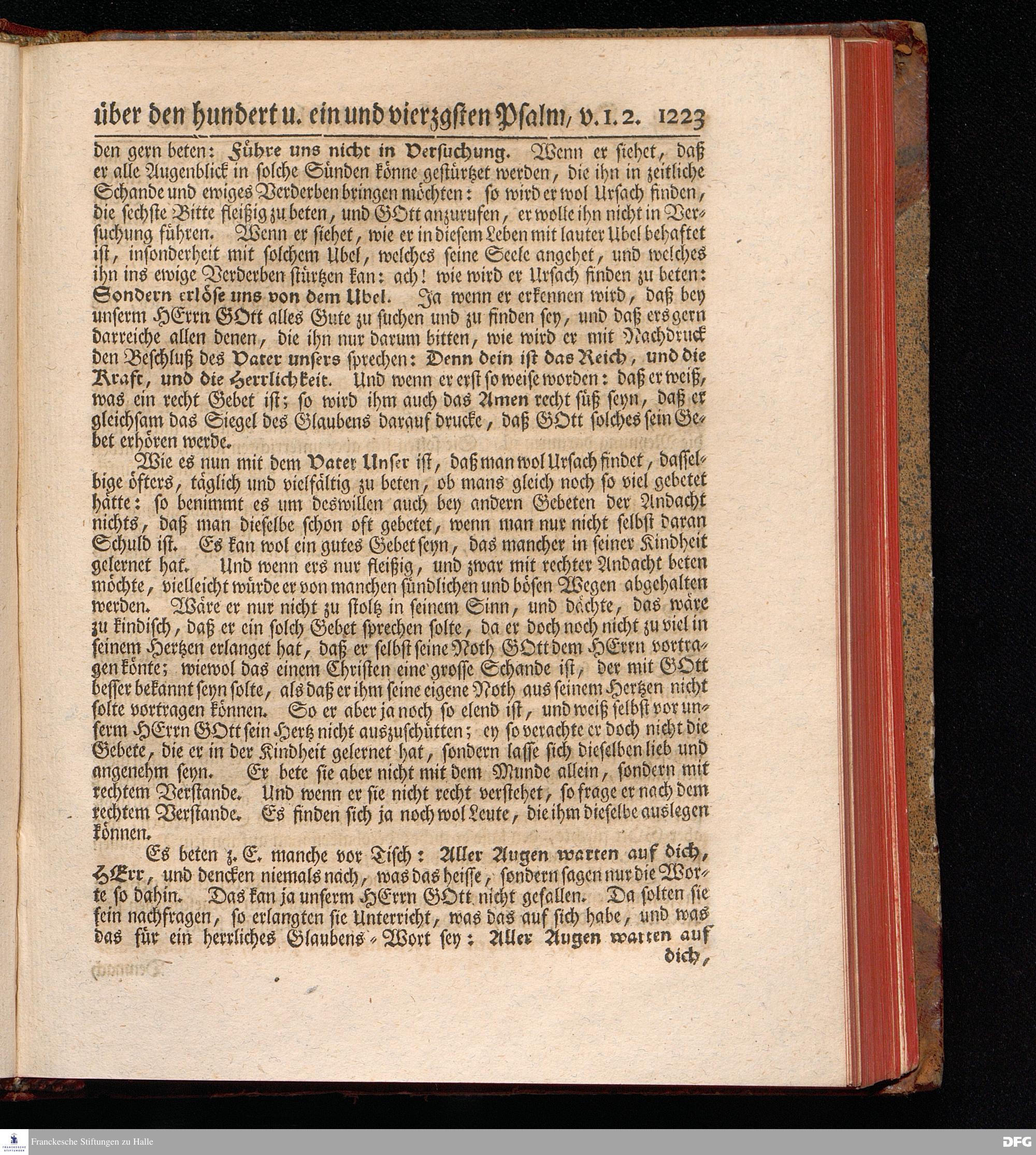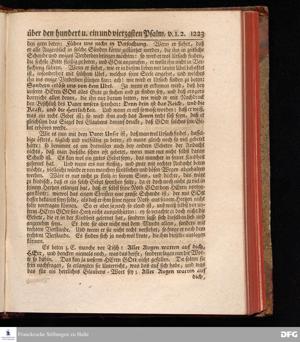 August Hermann Franckens, Weyl.Prof.Theol.Past.Ulr.und Schol. Erklärung Der Psalmen Davids; Erster [und] Anderer Theil, Mit einer Vorrede herausgegeben Von Gotthilf August Francken, S.S.Theol.Doct.und Prof.Publ.Ord.der ersten Dioeces des Saal-Creyses Inspectore und Pred.zur L.Fr. Andere Auflage. HALLE, in Verlegung des Wäysen=Hauses MDCCXLIII--MDCCXLV.