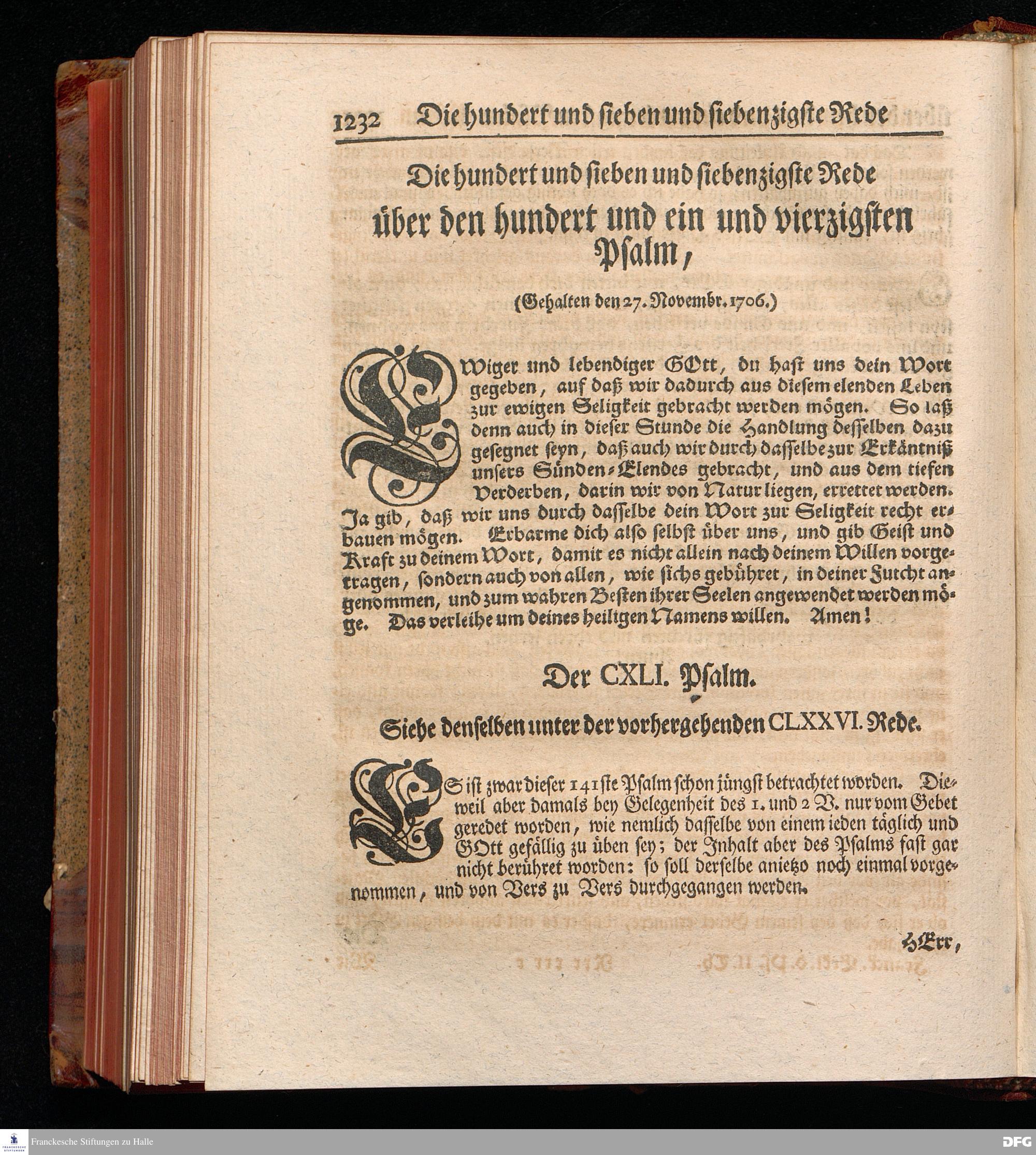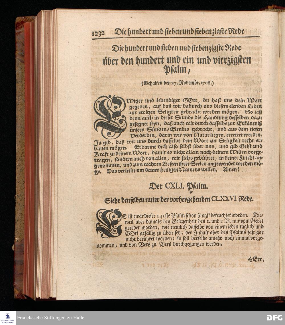 August Hermann Franckens, Weyl.Prof.Theol.Past.Ulr.und Schol. Erklärung Der Psalmen Davids; Erster [und] Anderer Theil, Mit einer Vorrede herausgegeben Von Gotthilf August Francken, S.S.Theol.Doct.und Prof.Publ.Ord.der ersten Dioeces des Saal-Creyses Inspectore und Pred.zur L.Fr. Andere Auflage. HALLE, in Verlegung des Wäysen=Hauses MDCCXLIII--MDCCXLV.