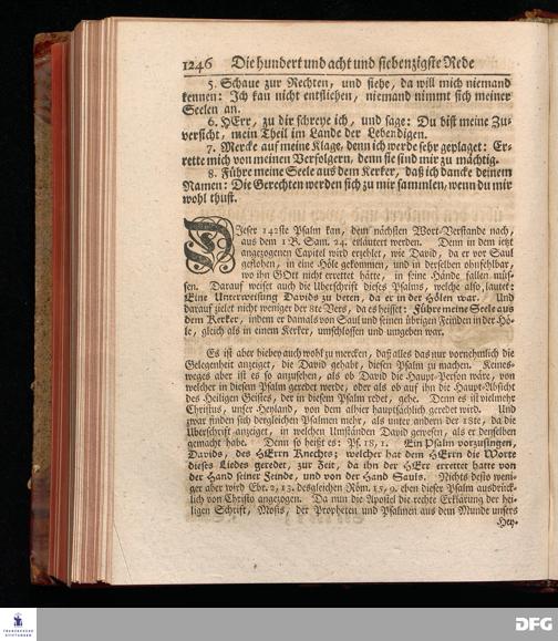 August Hermann Franckens, Weyl.Prof.Theol.Past.Ulr.und Schol. Erklärung Der Psalmen Davids; Erster [und] Anderer Theil, Mit einer Vorrede herausgegeben Von Gotthilf August Francken, S.S.Theol.Doct.und Prof.Publ.Ord.der ersten Dioeces des Saal-Creyses Inspectore und Pred.zur L.Fr. Andere Auflage. HALLE, in Verlegung des Wäysen=Hauses MDCCXLIII--MDCCXLV.