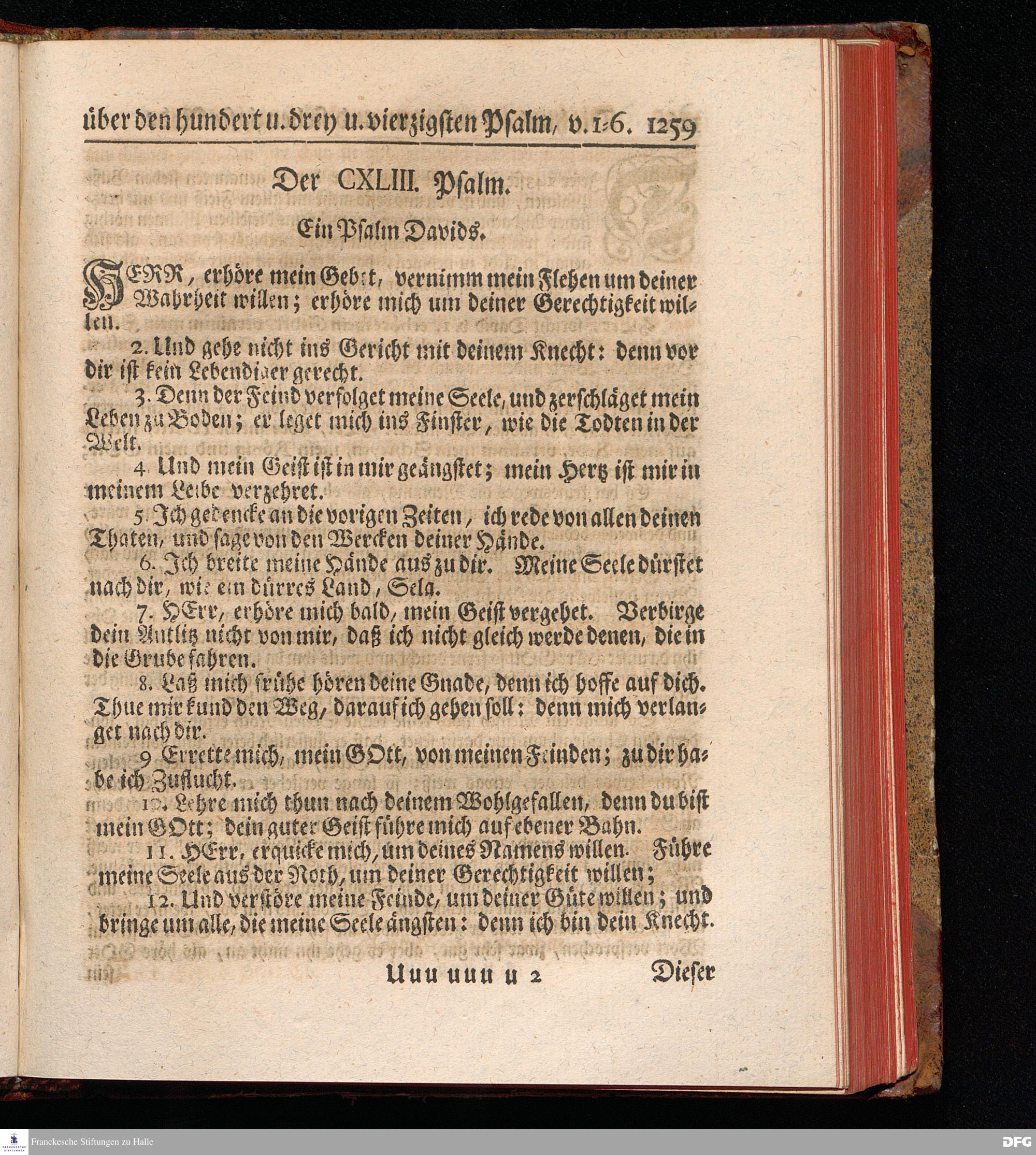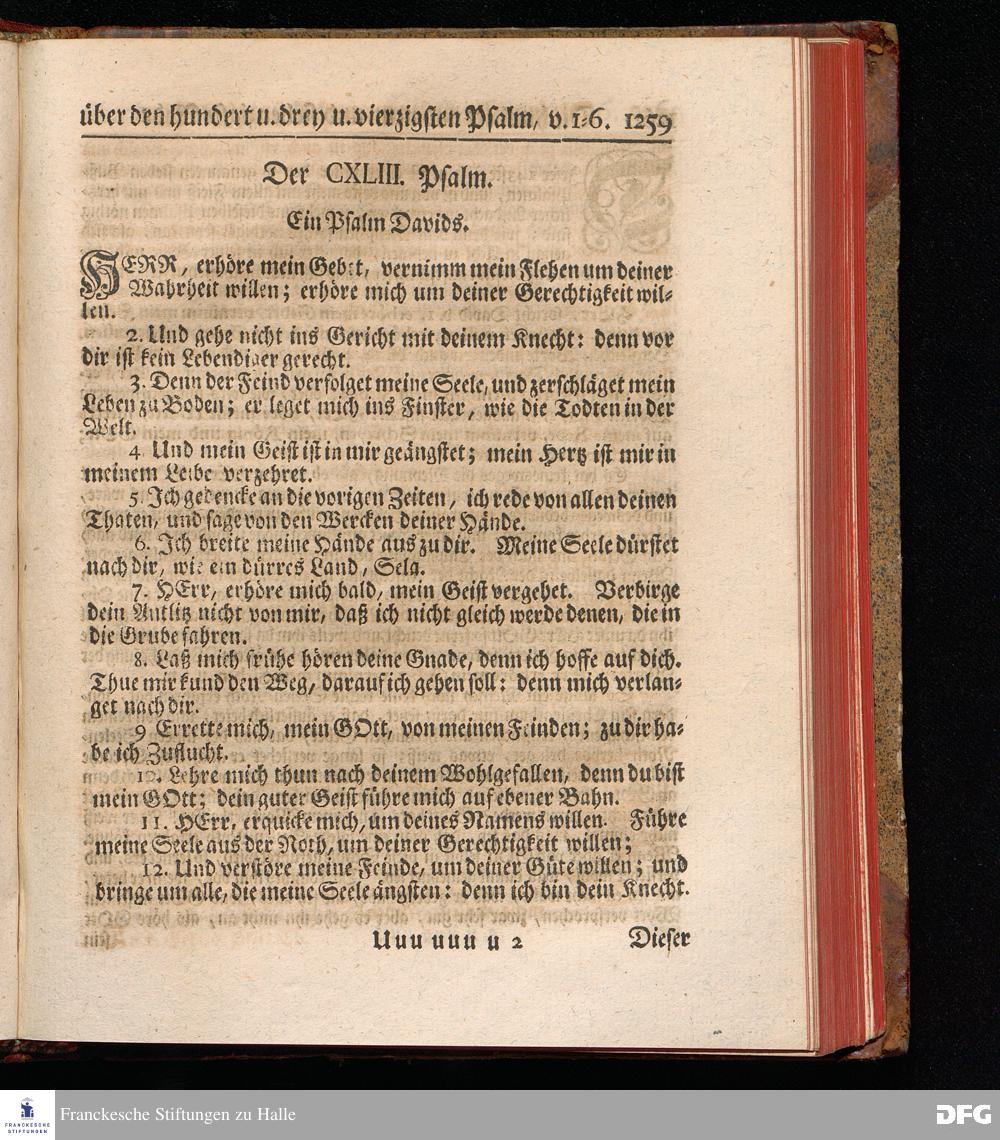 August Hermann Franckens, Weyl.Prof.Theol.Past.Ulr.und Schol. Erklärung Der Psalmen Davids; Erster [und] Anderer Theil, Mit einer Vorrede herausgegeben Von Gotthilf August Francken, S.S.Theol.Doct.und Prof.Publ.Ord.der ersten Dioeces des Saal-Creyses Inspectore und Pred.zur L.Fr. Andere Auflage. HALLE, in Verlegung des Wäysen=Hauses MDCCXLIII--MDCCXLV.