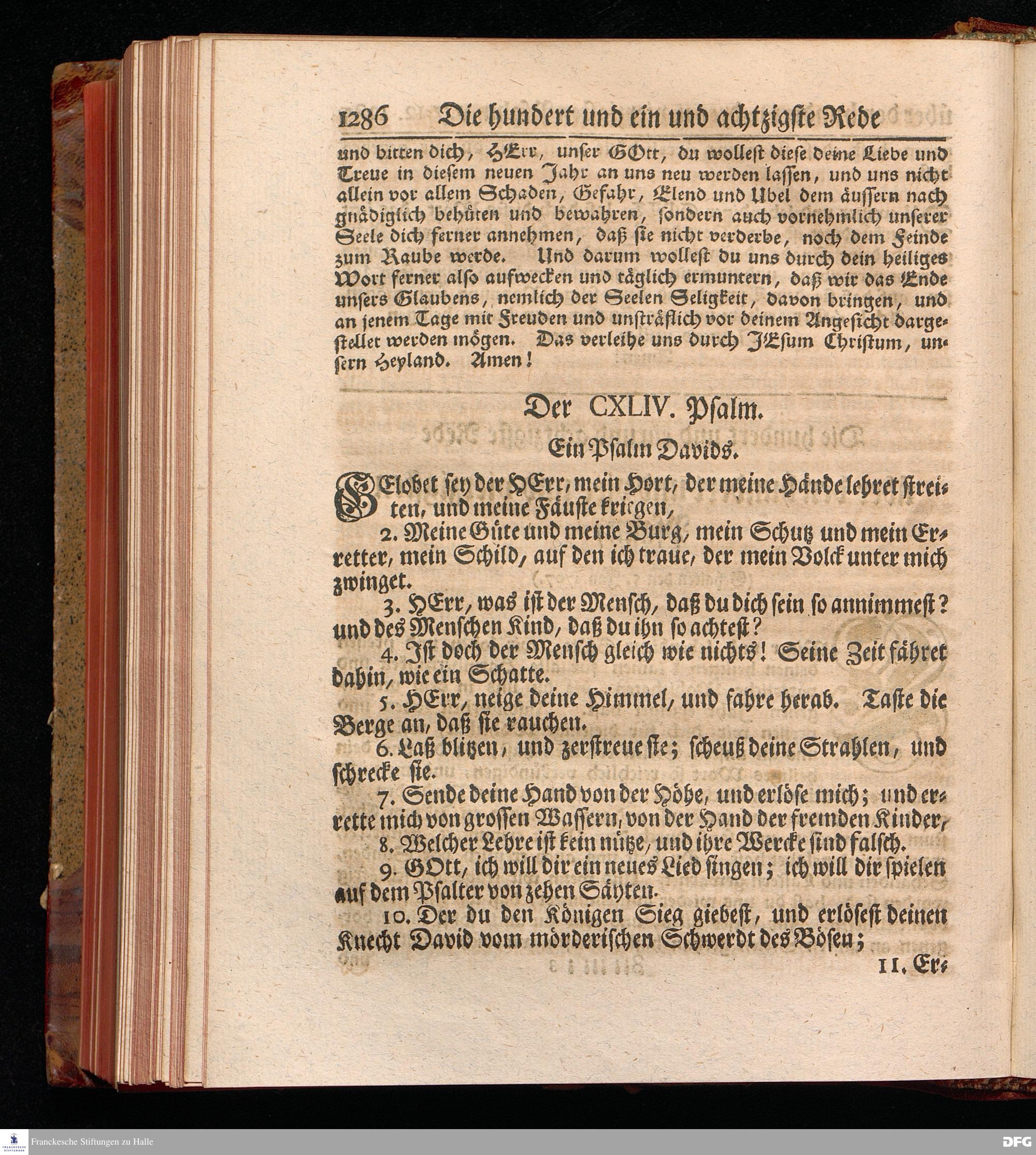 August Hermann Franckens, Weyl.Prof.Theol.Past.Ulr.und Schol. Erklärung Der Psalmen Davids; Erster [und] Anderer Theil, Mit einer Vorrede herausgegeben Von Gotthilf August Francken, S.S.Theol.Doct.und Prof.Publ.Ord.der ersten Dioeces des Saal-Creyses Inspectore und Pred.zur L.Fr. Andere Auflage. HALLE, in Verlegung des Wäysen=Hauses MDCCXLIII--MDCCXLV.
