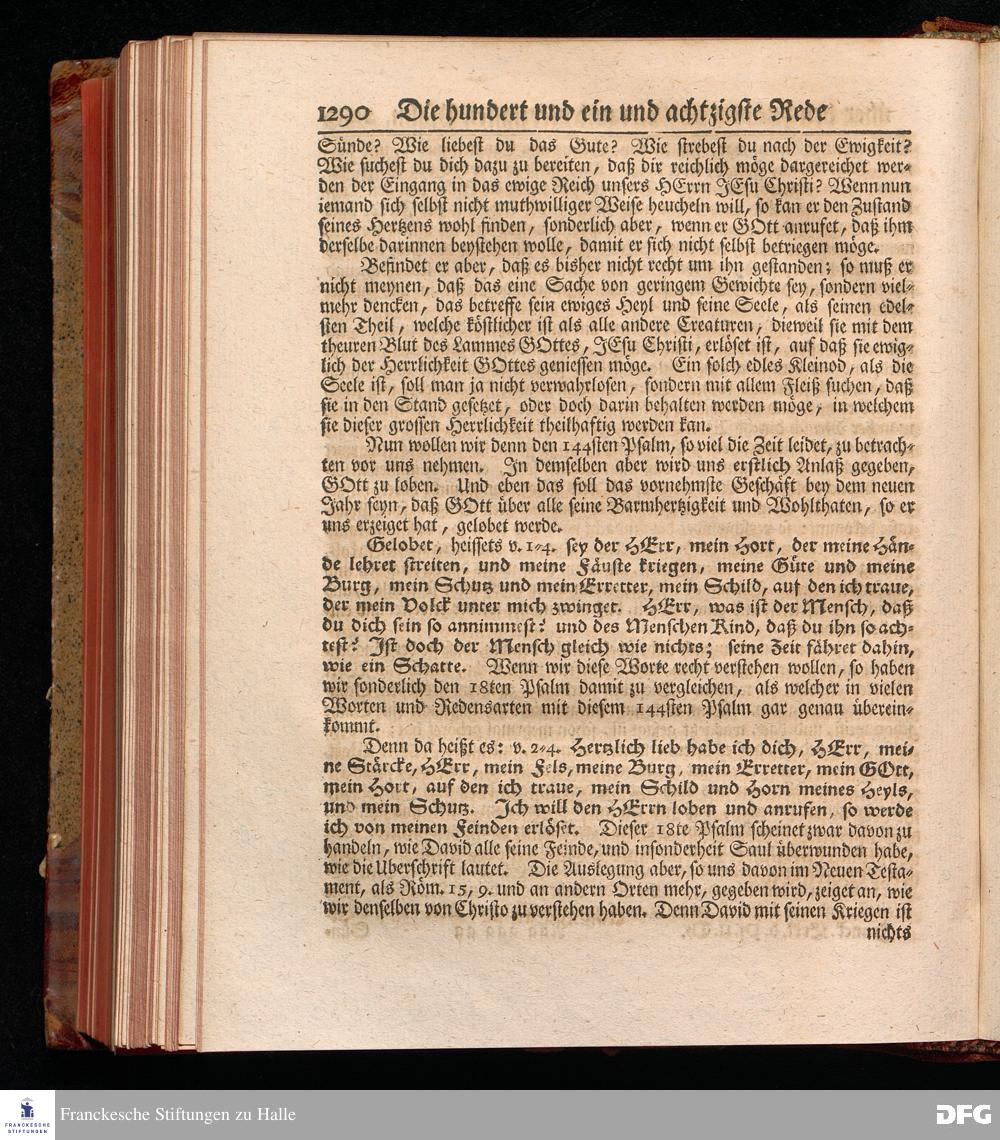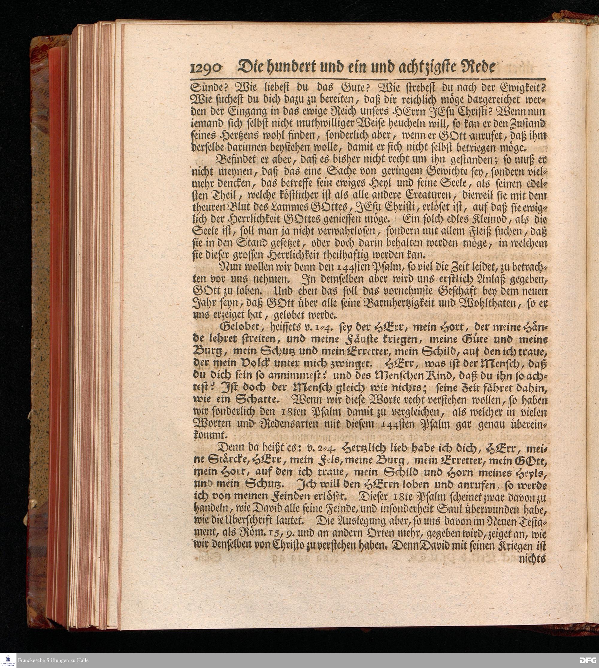 August Hermann Franckens, Weyl.Prof.Theol.Past.Ulr.und Schol. Erklärung Der Psalmen Davids; Erster [und] Anderer Theil, Mit einer Vorrede herausgegeben Von Gotthilf August Francken, S.S.Theol.Doct.und Prof.Publ.Ord.der ersten Dioeces des Saal-Creyses Inspectore und Pred.zur L.Fr. Andere Auflage. HALLE, in Verlegung des Wäysen=Hauses MDCCXLIII--MDCCXLV.