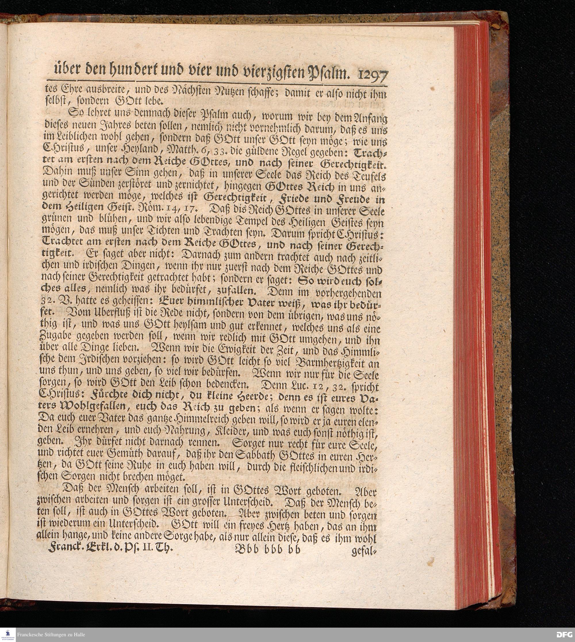 August Hermann Franckens, Weyl.Prof.Theol.Past.Ulr.und Schol. Erklärung Der Psalmen Davids; Erster [und] Anderer Theil, Mit einer Vorrede herausgegeben Von Gotthilf August Francken, S.S.Theol.Doct.und Prof.Publ.Ord.der ersten Dioeces des Saal-Creyses Inspectore und Pred.zur L.Fr. Andere Auflage. HALLE, in Verlegung des Wäysen=Hauses MDCCXLIII--MDCCXLV.