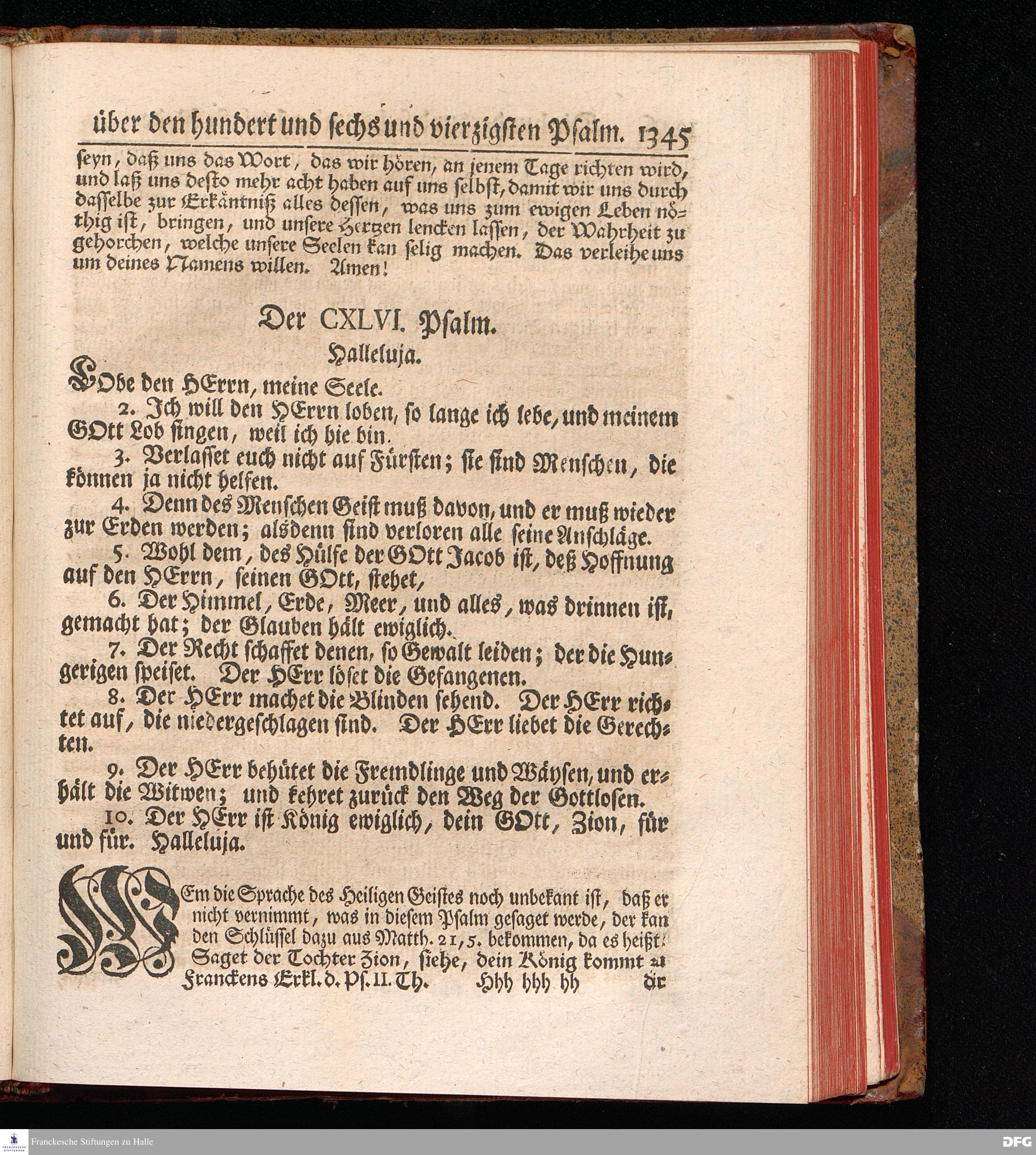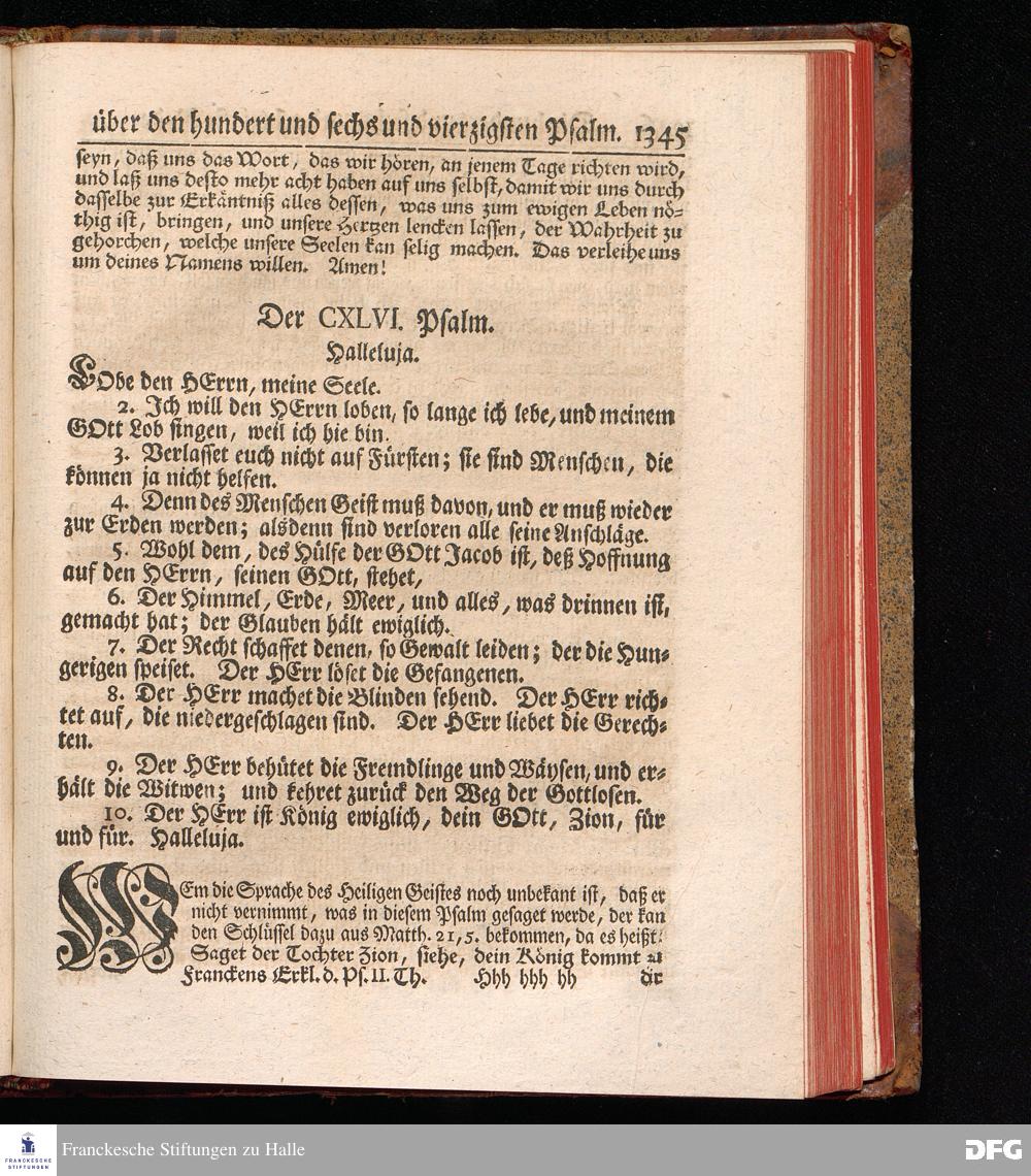 August Hermann Franckens, Weyl.Prof.Theol.Past.Ulr.und Schol. Erklärung Der Psalmen Davids; Erster [und] Anderer Theil, Mit einer Vorrede herausgegeben Von Gotthilf August Francken, S.S.Theol.Doct.und Prof.Publ.Ord.der ersten Dioeces des Saal-Creyses Inspectore und Pred.zur L.Fr. Andere Auflage. HALLE, in Verlegung des Wäysen=Hauses MDCCXLIII--MDCCXLV.