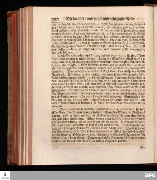 August Hermann Franckens, Weyl.Prof.Theol.Past.Ulr.und Schol. Erklärung Der Psalmen Davids; Erster [und] Anderer Theil, Mit einer Vorrede herausgegeben Von Gotthilf August Francken, S.S.Theol.Doct.und Prof.Publ.Ord.der ersten Dioeces des Saal-Creyses Inspectore und Pred.zur L.Fr. Andere Auflage. HALLE, in Verlegung des Wäysen=Hauses MDCCXLIII--MDCCXLV.