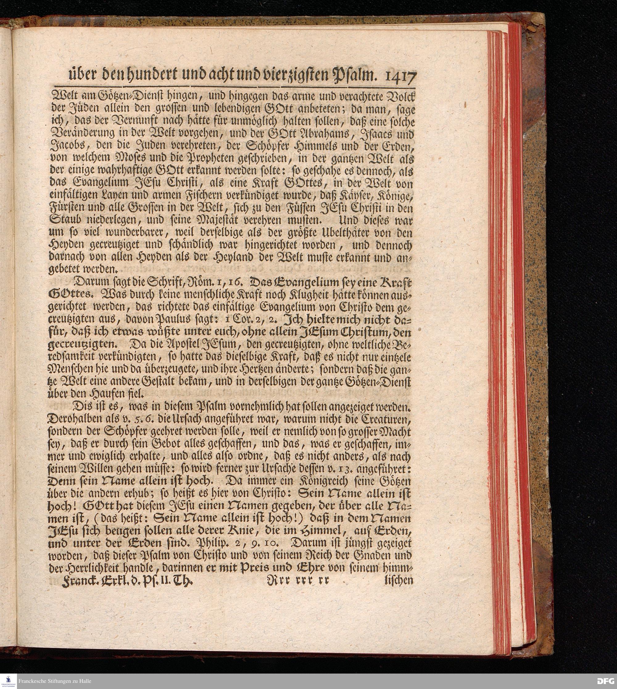 August Hermann Franckens, Weyl.Prof.Theol.Past.Ulr.und Schol. Erklärung Der Psalmen Davids; Erster [und] Anderer Theil, Mit einer Vorrede herausgegeben Von Gotthilf August Francken, S.S.Theol.Doct.und Prof.Publ.Ord.der ersten Dioeces des Saal-Creyses Inspectore und Pred.zur L.Fr. Andere Auflage. HALLE, in Verlegung des Wäysen=Hauses MDCCXLIII--MDCCXLV.