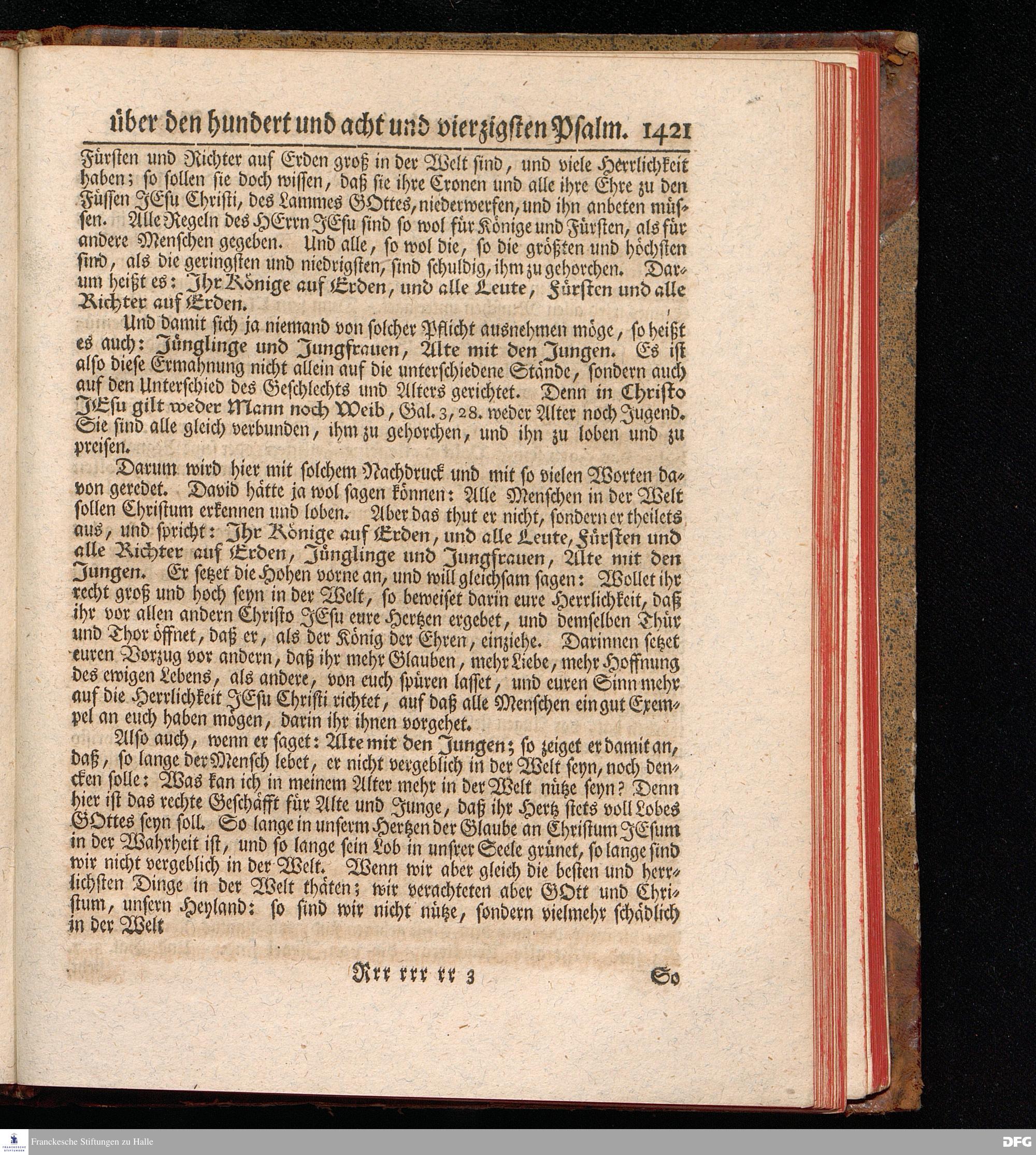 August Hermann Franckens, Weyl.Prof.Theol.Past.Ulr.und Schol. Erklärung Der Psalmen Davids; Erster [und] Anderer Theil, Mit einer Vorrede herausgegeben Von Gotthilf August Francken, S.S.Theol.Doct.und Prof.Publ.Ord.der ersten Dioeces des Saal-Creyses Inspectore und Pred.zur L.Fr. Andere Auflage. HALLE, in Verlegung des Wäysen=Hauses MDCCXLIII--MDCCXLV.