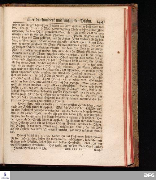 August Hermann Franckens, Weyl.Prof.Theol.Past.Ulr.und Schol. Erklärung Der Psalmen Davids; Erster [und] Anderer Theil, Mit einer Vorrede herausgegeben Von Gotthilf August Francken, S.S.Theol.Doct.und Prof.Publ.Ord.der ersten Dioeces des Saal-Creyses Inspectore und Pred.zur L.Fr. Andere Auflage. HALLE, in Verlegung des Wäysen=Hauses MDCCXLIII--MDCCXLV.