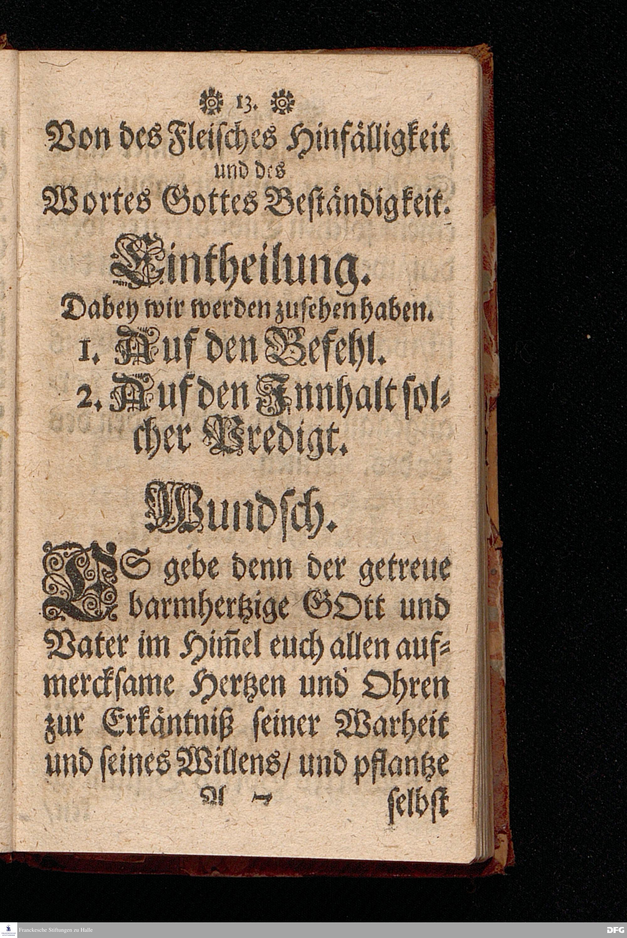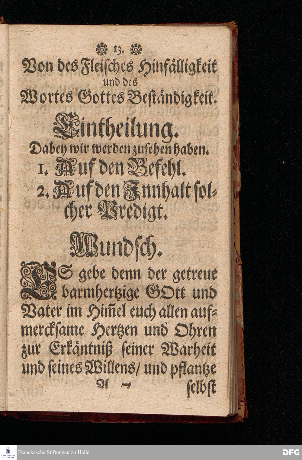Die Von GOtt befohlne Predigt / Von der Hinfälligkeit des Fleisches / und der Beständigkeit des Wortes Gottes / Bey Beerdigung Des Tit.HERRN Jac.Voglers / Regierenden Richters zu Glaucha an Halle / Aus Esa. XL,6.7.8. fürgetragen den 2.Febr. 1697. von M.Aug.Hermann Francken / Gr.& OO.LL.Prof.Ord. und Past. Zum andern mal gedruckt. Nordhausen / Verlegts Johann Dauderstadt / Buchh.