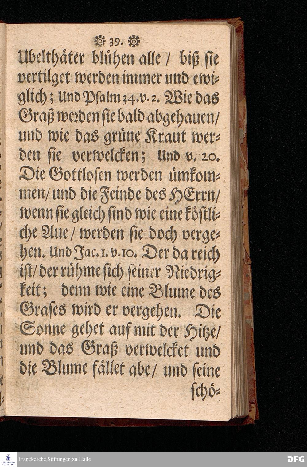 Die Von GOtt befohlne Predigt / Von der Hinfälligkeit des Fleisches / und der Beständigkeit des Wortes Gottes / Bey Beerdigung Des Tit.HERRN Jac.Voglers / Regierenden Richters zu Glaucha an Halle / Aus Esa. XL,6.7.8. fürgetragen den 2.Febr. 1697. von M.Aug.Hermann Francken / Gr.& OO.LL.Prof.Ord. und Past. Zum andern mal gedruckt. Nordhausen / Verlegts Johann Dauderstadt / Buchh.