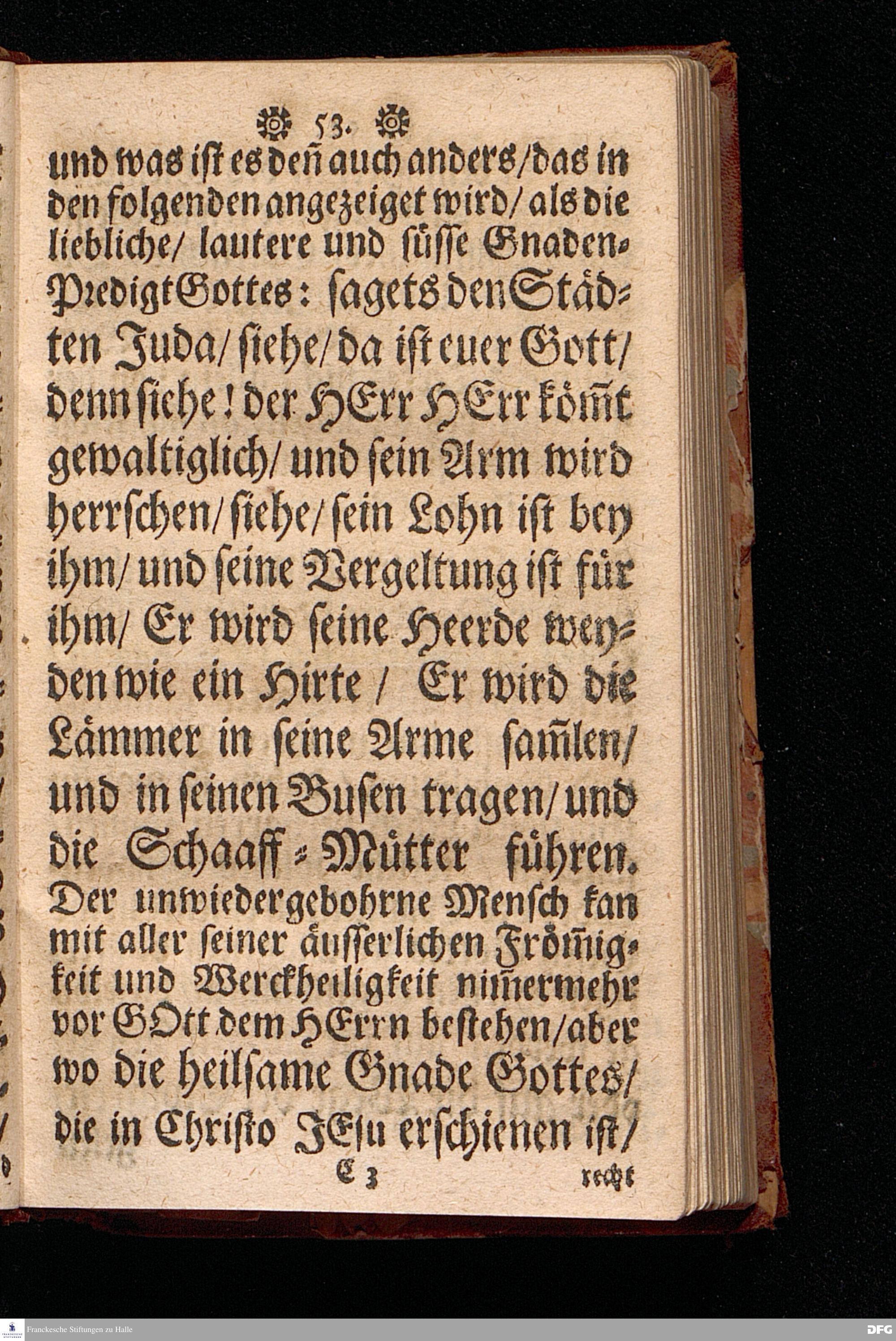 Die Von GOtt befohlne Predigt / Von der Hinfälligkeit des Fleisches / und der Beständigkeit des Wortes Gottes / Bey Beerdigung Des Tit.HERRN Jac.Voglers / Regierenden Richters zu Glaucha an Halle / Aus Esa. XL,6.7.8. fürgetragen den 2.Febr. 1697. von M.Aug.Hermann Francken / Gr.& OO.LL.Prof.Ord. und Past. Zum andern mal gedruckt. Nordhausen / Verlegts Johann Dauderstadt / Buchh.