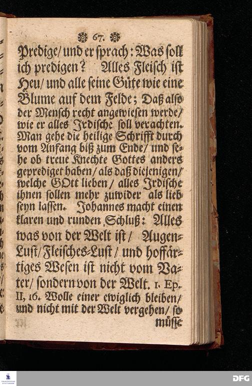 Die Von GOtt befohlne Predigt / Von der Hinfälligkeit des Fleisches / und der Beständigkeit des Wortes Gottes / Bey Beerdigung Des Tit.HERRN Jac.Voglers / Regierenden Richters zu Glaucha an Halle / Aus Esa. XL,6.7.8. fürgetragen den 2.Febr. 1697. von M.Aug.Hermann Francken / Gr.& OO.LL.Prof.Ord. und Past. Zum andern mal gedruckt. Nordhausen / Verlegts Johann Dauderstadt / Buchh.